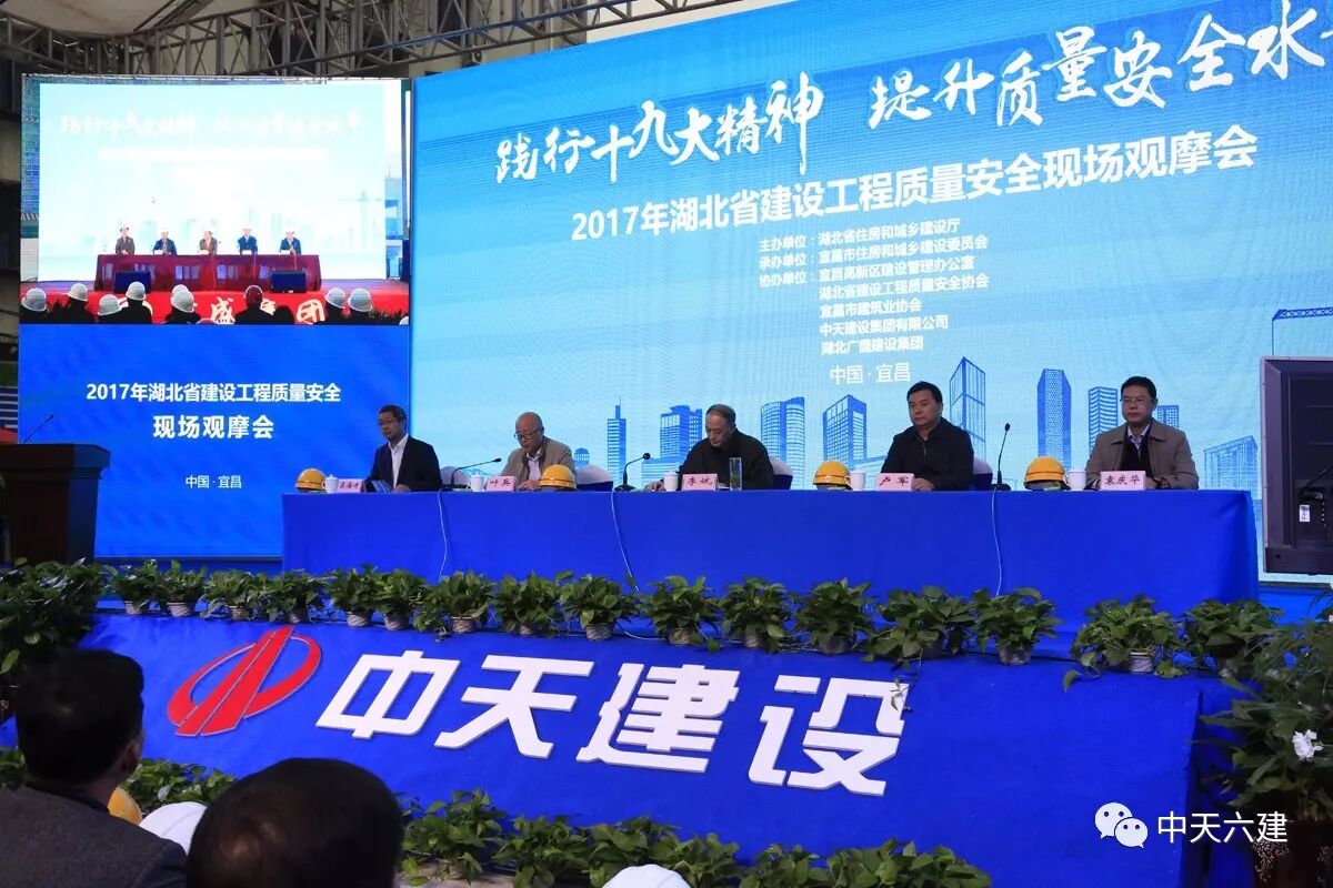 此次观摩会以“践行十九大精神,提升质量安全水平”为主题。湖北省住建厅副巡视员李斌、宜昌市副市长卢军、湖北省质量安全监督管理总站站长叶兵、宜昌市住房与建设委员会总工程师袁庆华、中天建设集团副总裁吴海涛等相关领导出席了观摩会。