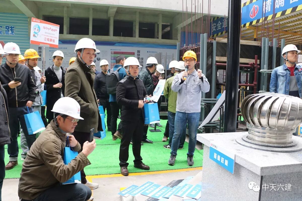 随后,观摩人员分组在现场多个展示区内进行了观摩。VR模拟施工现场,进行安全教育;BIM设计排版,砌墙分毫不差;装配式爬架配合铝模,现浇外墙让“家”的品质更上一层楼……观摩会现场亮出的“绝活”不少。施工现场的智慧建造、快建造体系、标准化管理等多项先进技术和管理模式,赢得了前来观摩人员的称赞和肯定。观摩期间,吴海涛总经理和行业主管部门领导就中天项目管理的部分特色做法进行了深入探讨交流,特别是凭借企业OA平台、BIM管理平台、劳务实名制管理平台、安全VR体验平台、二维码平台等一系列“互联网+”手段打造的智慧工地系统,通过BIM技术进行施工方案优化、安全管理、成本管控,利用标准化管理,提高效率,严把生产质量安全关等一系列先进建造模式和思路,得到与会领导的广泛关注和肯定。