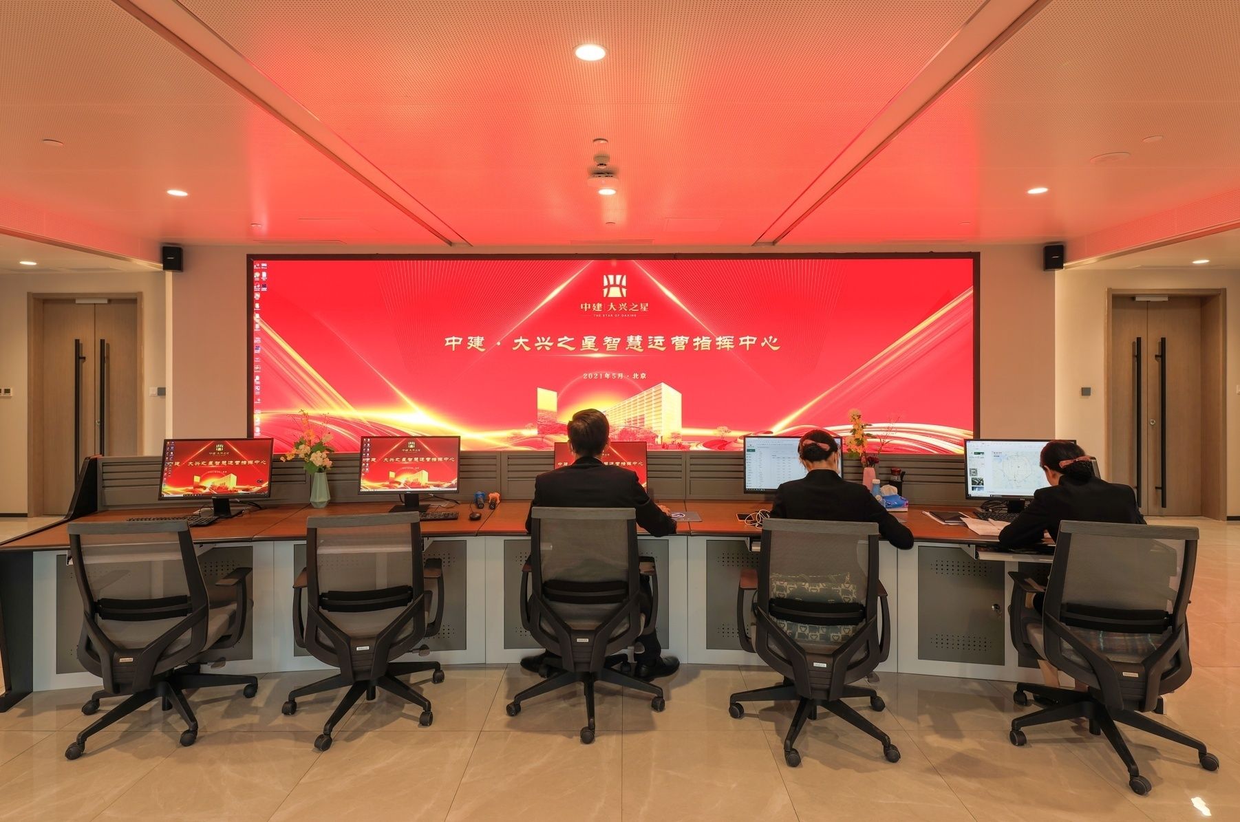 走进北京中建·大兴之星指挥中心,300寸电子屏幕上每天至少归集20万条信息。