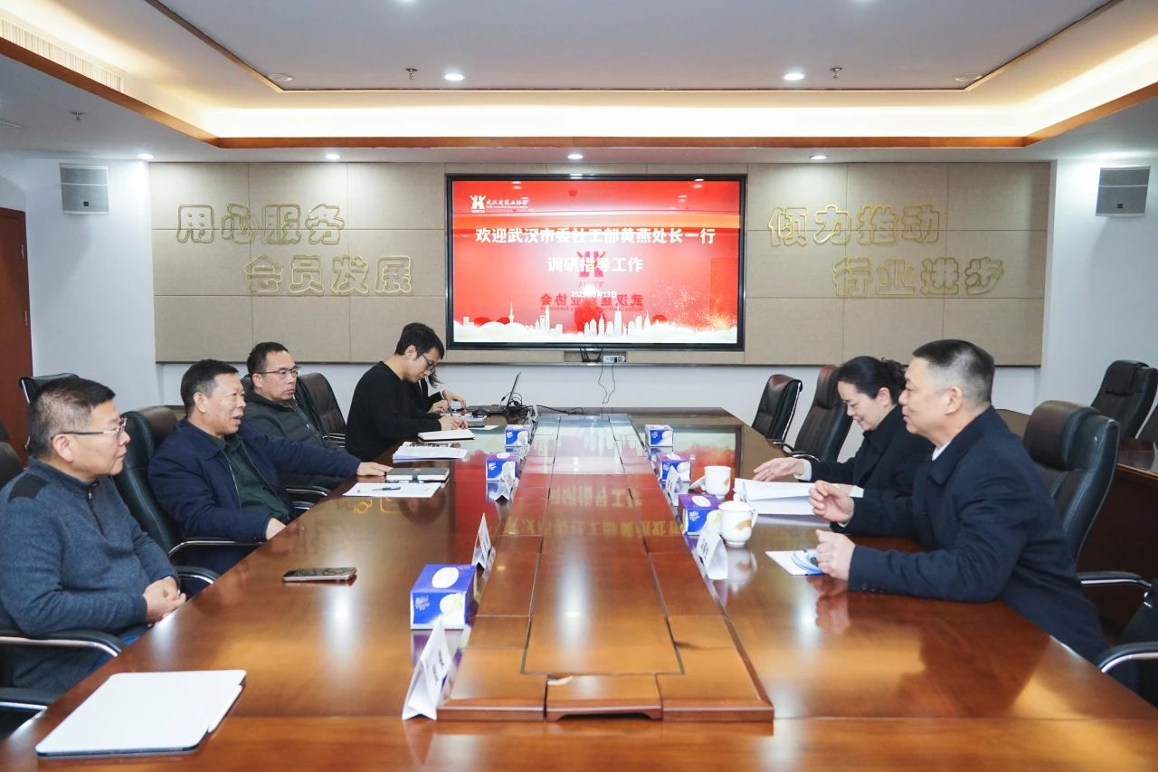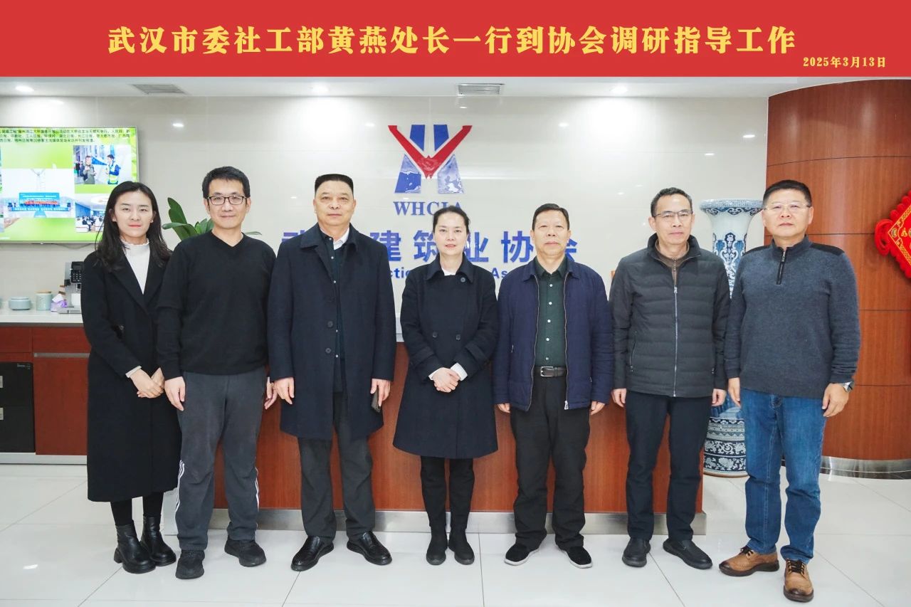 3月13日,武汉市委社会工作部党建一处黄燕处长,二级调研员冯春生一行到协会调研指导工作。协会秘书长李红青,副秘书长陈钢、何洪普,党支部副书记周水祥,综合办主任韩冰等参会交流。