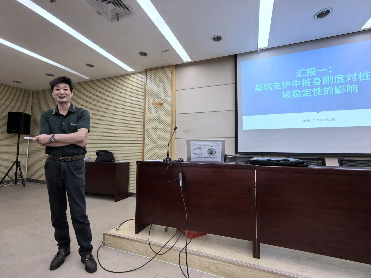 武汉基坑知名专家、工学博士徐书平从基坑支护中桩身刚度对桩顶边坡稳定性的影响和圆拱效应等效支撑的计算方法两个方面进行了详细报告,为基坑支护设计提供了新的理论依据和计算方法。
