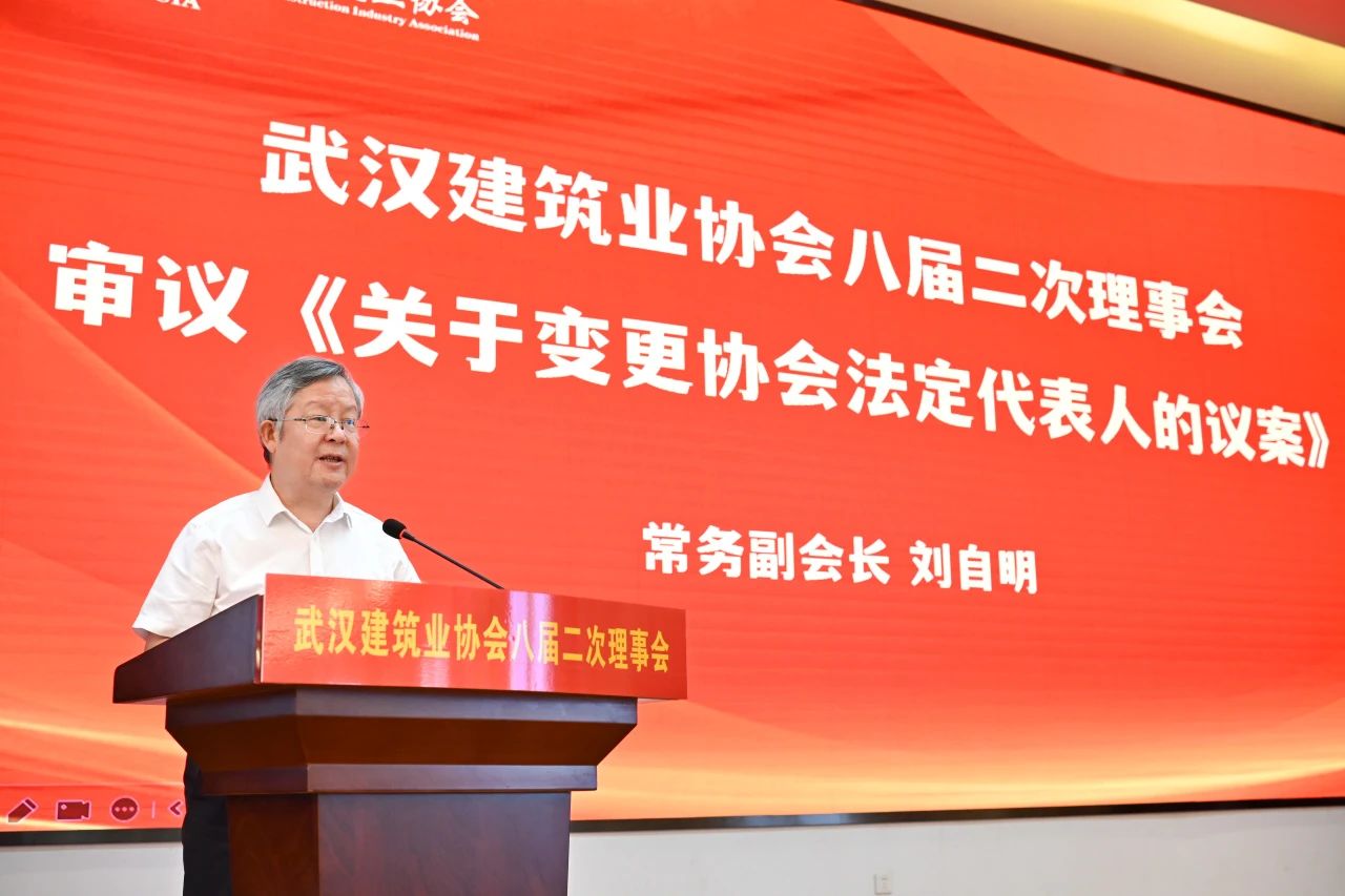 在人事与组织事项审议环节,会议审议并通过《关于变更协会法定代表人的议案》、《关于变更协会副会长的议案》、《关于清退协会部分会员单位的议案》、《关于调整协会理事、常务理事的议案》以及《关于召开武汉建筑业协会八届二次会员大会的议案》。