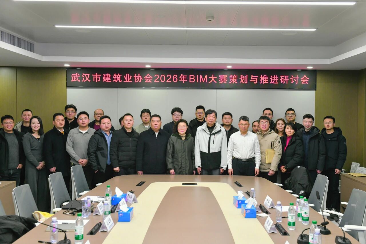1月23日,由协会组织的2026年BIM大赛方案策划与推进研讨会暨数字化应用交流会中建三局三公司召开。 协会副秘书长安维红,总工委副主任徐洪,总联络员张汉珍,中建三局三公司副总工程师段军朝,科创事业部总经理李劲,BIM中心主任雷全勇,中南院新质生产力数字建筑技术中心副总工龙潇博士,以及来自长江设计院研发中心高蔚,中建三局总承包公司周晓帆,中信设计院刘祥明,市政工程中南院吴迪,中建八局华中公司张润东,中电光谷建筑设计院白红,中天建设集团李聪,广联达科技房雨珊,艾比蒙(武汉)信息公司李新桥等30余位专家参加会议。会议由安维红主持。 专家们参观中建三局三公司数字展厅,了解三局三公司发展理念、战略目标、业务选择、区域布局、组织架构、业务发展策略等发展历程,学习了三公司“雷霆三实·拼闯争先”企业文化精神。 中建三局三公司副总工程师段军朝致辞。 中建三局三公司BIM中心主任雷全勇作《基于Open BIM的广州白云国际机场T3航站楼智能建造》主题分享。 中南建筑设计院新质生产力发展中心数字建筑技术中心副总工龙潇博士作《“GiantAI 2.0 建筑创意方案辅助设计平台”》的主题分享 中建三局总承包公司智能建造院院长助理周晓帆介绍2026年BIM大赛方案策划情况。 参会专家围绕 2026 年大赛相关事宜提出多项建议,具体包括:大赛主题、赛制设计、组织安排及时间节点的优化,评分规则的细化完善,开展形式的创新方向;BIM大赛创新品牌的持续打造,参赛方案质量的提升路径;数据采集、智能装备的融合应用,BIM 技术从项目级向企业级的延伸落地;同时明确需坚持以项目实际应用为核心导向,进一步拓展“BIM+N”多元场景应用,强化AI技术在大赛中的创新实践等。 安维红详细介绍了武汉市自然资源和城乡建设局科技计划项目的总体部署与核心导向。为深入贯彻创新驱动发展战略,持续提升建设领域产业科技创新效能,全力助推建筑业新质生产力高质量发展,该科技计划项目明确了重点选题方向 —— 聚焦人工智能、低空经济、智能网联、碳汇、卫星遥感、深地、绿色低碳建筑、智能建造等前沿领域,紧扣新质生产力培育核心要求,重点围绕建设领域实际痛点难点,开展关键科技创新技术研发与产业发展战略研究,以科技赋能行业转型升级。 徐洪指出,近年来在国家“十四五”规划持续推动智能建造与新型建筑工业化发展的大背景下,BIM技术作为建筑业数字化转型的核心抓手,正深刻重塑行业设计、施工、运维全生命周期管理模式。 武汉建筑业协会自2017年起已连续成功举办九届建设工程BIM大赛,通过赛事平台积极推动BIM技术在本地建筑行业的普及应用,积累了扎实成果。 徐洪表示,今天的调研交流活动是本届大赛的重要组成部分,旨在汇聚行业精英力量,共同探讨智能建造产业发展规划,分享新技术、新产品与创新管理经验,促进产业链上下游深度融合联动,为推动智能建造产业高质量发展、助力建筑行业转型升级注入强劲动力。