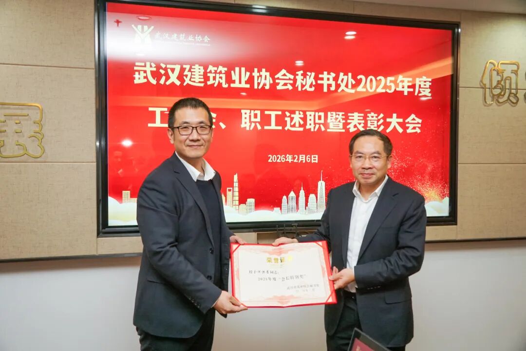 李红青宣读《关于对2025年度秘书处先进员工进行嘉奖的决定》。戴运华、李红青分别为获奖职工颁奖。