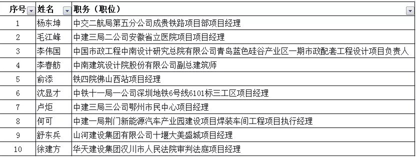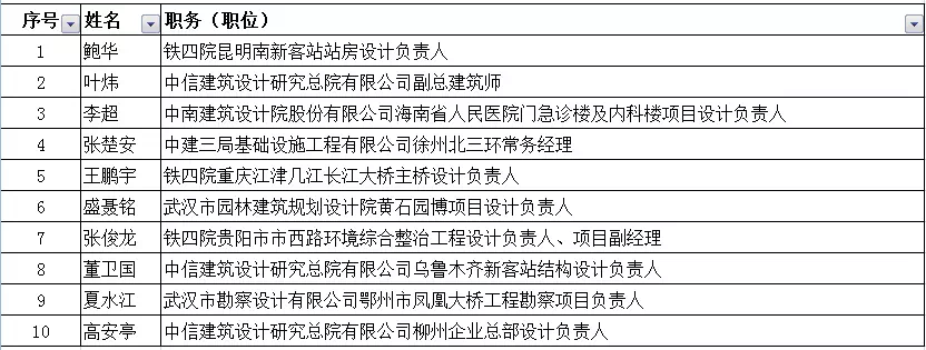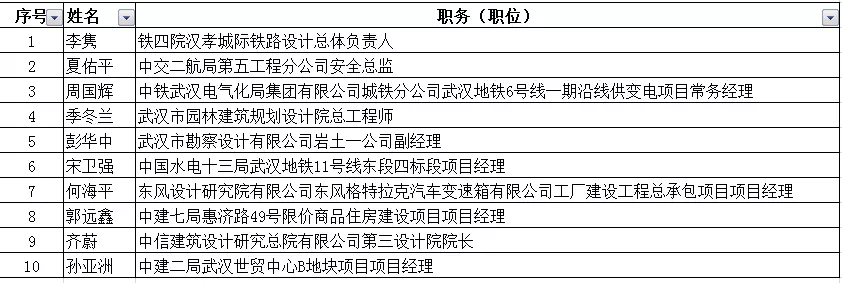 7日,出席评审会的评委有:全国工程设计大师、铁四院副院长王玉泽;全国工程设计大师、中交二公院副总经理兼总工程师廖朝华;华中科技大学建筑与城市规划学院原院长李保峰;武汉建筑业协会副会长兼秘书长李淼磊;武汉市勘察设计协会理事长张晰;武汉市建筑行业工会联合会副主席李红青;武汉建筑业协会总工程师工作委员会副主任兼秘书长安维红。社会形象评委有:武汉大学新闻与传播学院副院长程明;中国管理科学院武汉分院副院长胡润州;湖北楚天都市报传媒有限责任公司负责人。