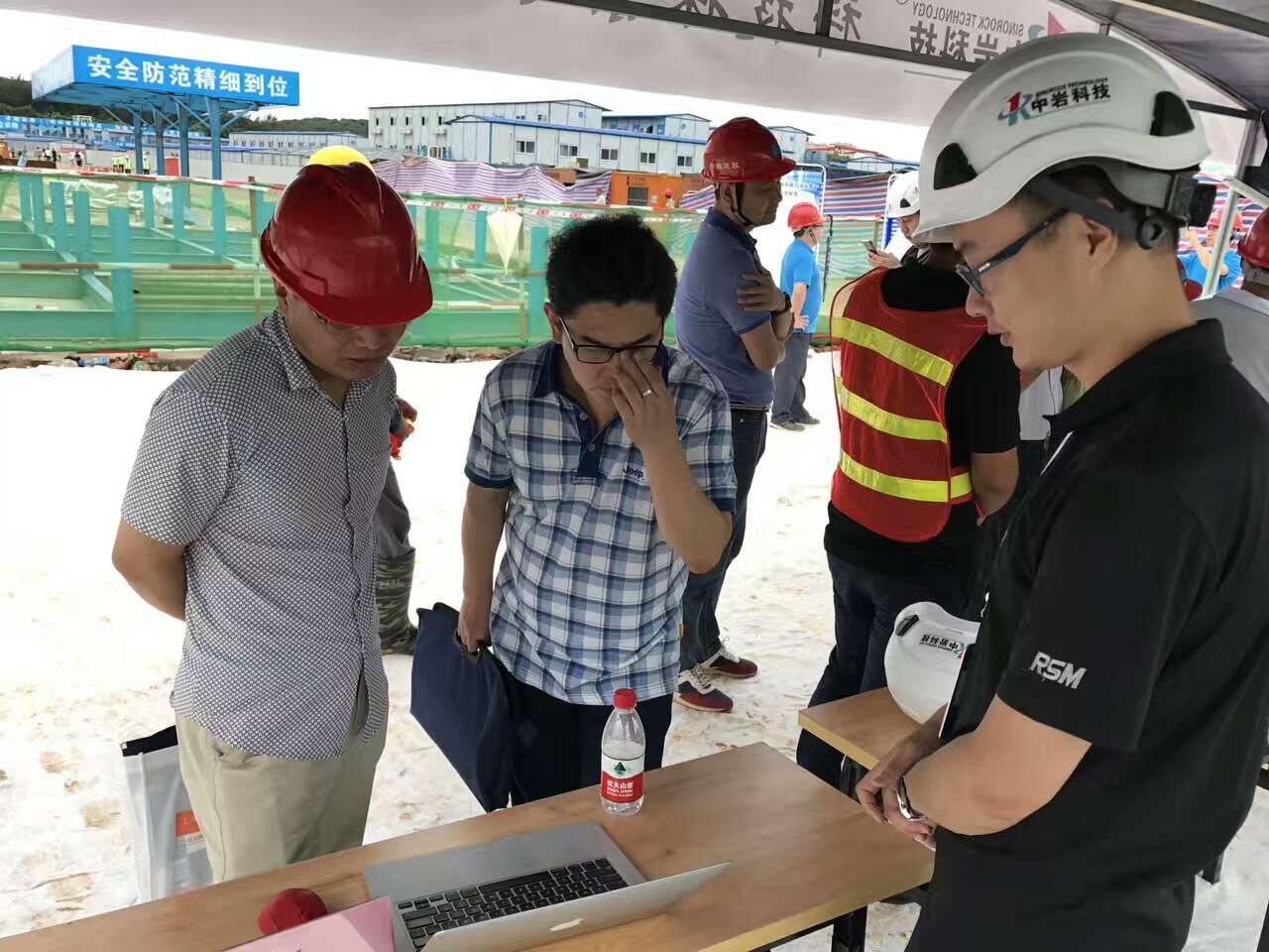 全体与会人员分批前往东西湖区体育中心工程静载荷测试现场进行观摩,武汉中岩科技有限公司技术人员在观摩现场为参会人员讲解了数据上传的具体操作办法。