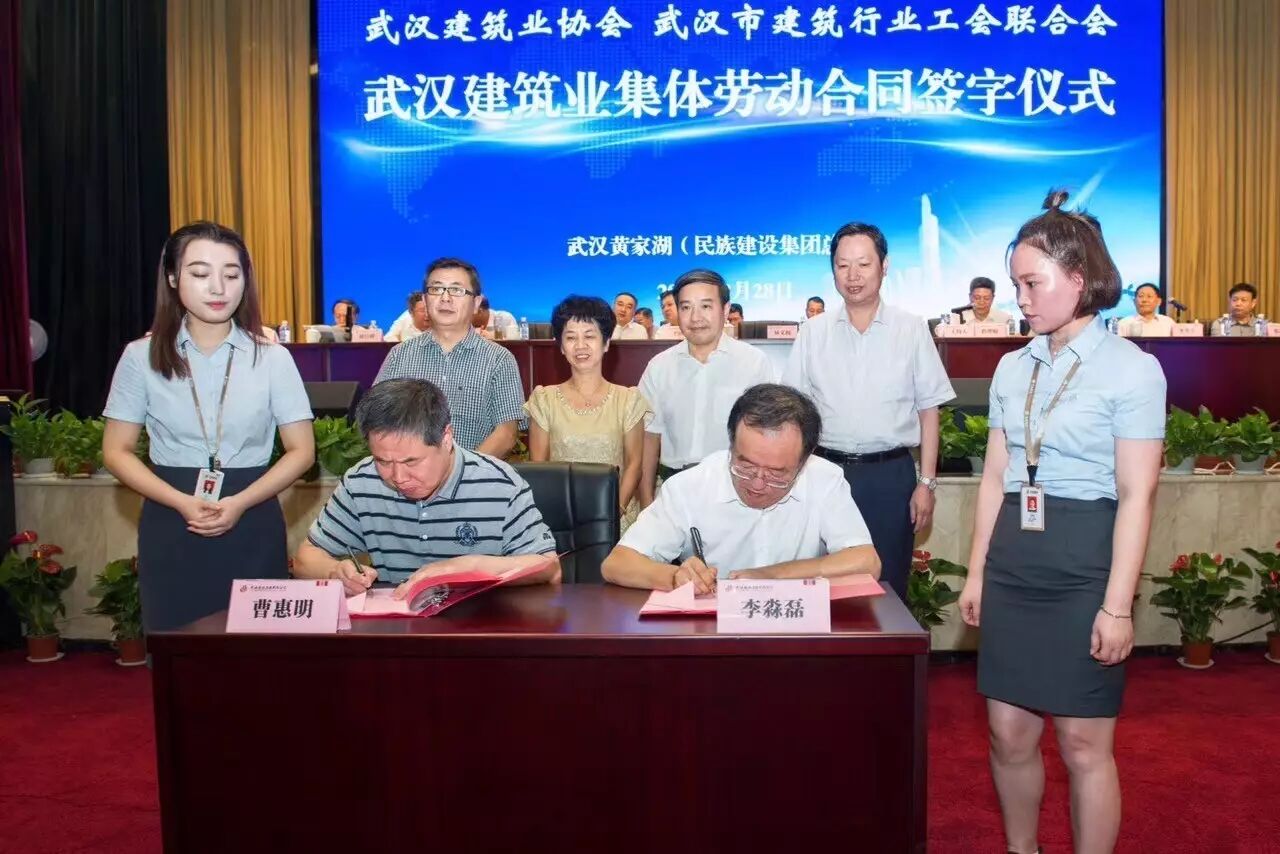 会上进行了“广盛杯”弘扬沈祝三精神征文大赛颁奖仪式。发表《弘扬沈祝三精神,促进行业自律》倡议书(全文另发)。在省总工会副主席、市总工会党组书记兼常务副主席李丹芳、市总工会副主席李兵和协会会长易文权、副会长刘炳元的见证下,副会长兼秘书长李淼磊与武汉市建筑行业工会联合会主席曹惠明签订了《武汉市建筑行业集体劳动合同》(全文另发)。