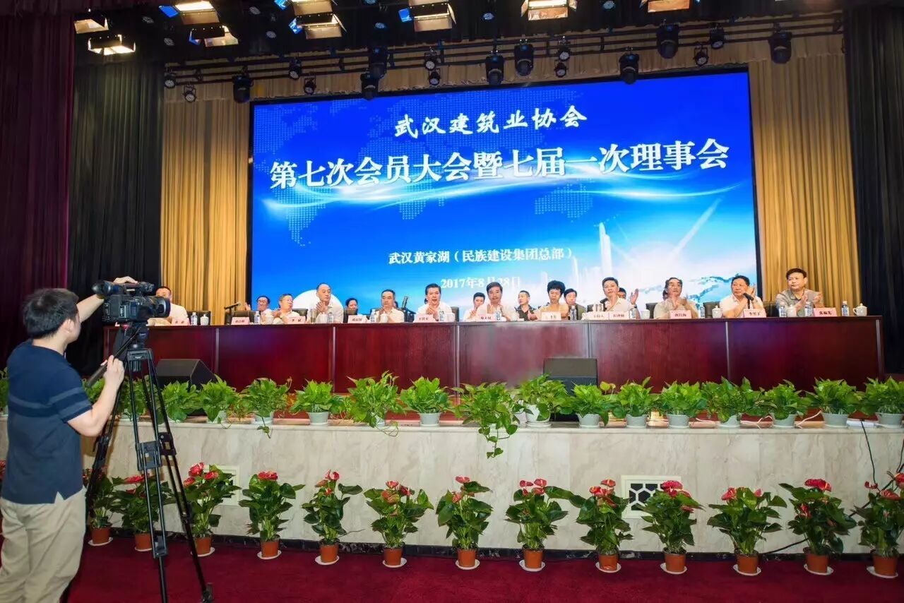 2017年8月28日,武汉建筑业协会第七次会员大会暨七届一次理事会在民族建设集团总部隆重召开。大会的主要任务是总结六届理事会工作,研究、确定协会下一步发展方向、主要任务和工作重点,修改协会章程并进行换届选举。中国建筑业协会会长王铁宏、湖北省住建厅副巡视员李斌、湖北省总工会副主席刘富国、中国建筑业协会建筑史志与文化分会会长李里丁、湖北省总工会副主席、武汉市总工会党组书记兼常务副主席李丹芳、武汉市总工会副主席李兵和胡朝晖、武汉市城乡建设委员会副巡视员黄超、湖北省住建厅政策研究室主任余振武、湖北省建筑工程管理局副局长张晓曦、武汉市民政局社团管理处处长张福先、中国建设报主编王燕生等领导莅会指导,协会会长、副会长、秘书长、监事、各会员企业领导或代表、兄弟协会代表以及《中国建设报》、《楚天都市报》、《长江日报》、《中华建设》等媒体记者共518人参加盛会。会议由山河集团董事长、协会副会长程理财主持。王铁宏会长还应邀作了《当前建筑业改革发展中的三场变革和三件大事》专题报告。