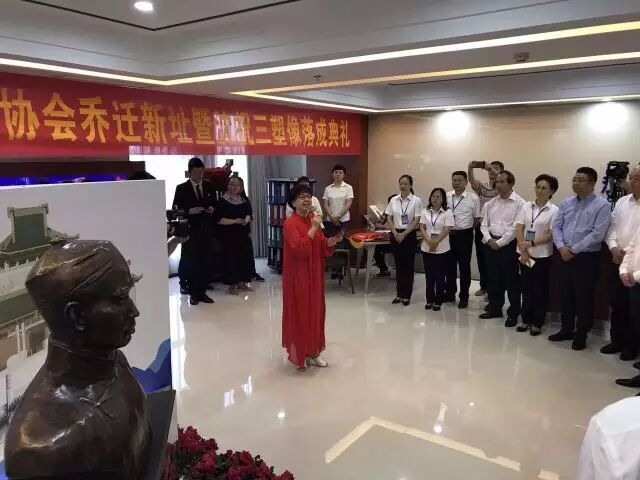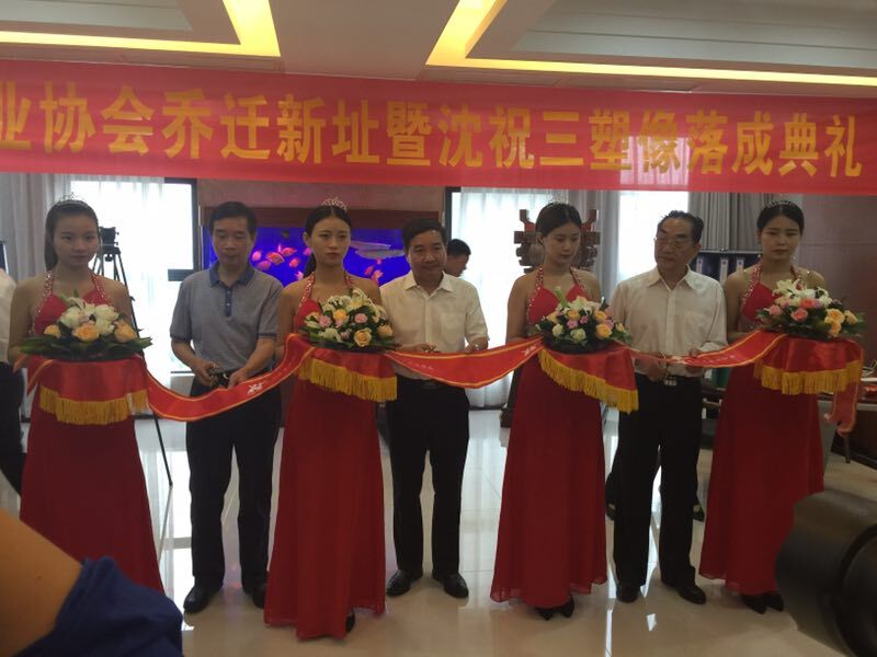 易文权、唐昌海、沈世璋共同剪彩 沈祝三塑像在协会新址落成
