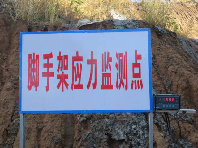 储罐拱顶混凝土施工过程中,项目在脚手架立杆顶端安装40个“应力检测器”,适时全面掌握各立杆的受力及变形情况,确保施工质量和人员安全。