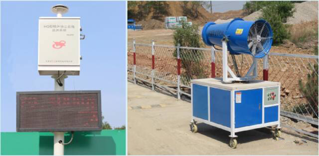 当扬尘检测器上显示项目的PM2.5达到70mg/m3时,项目便启动移动“雾炮”、洒水车降尘。