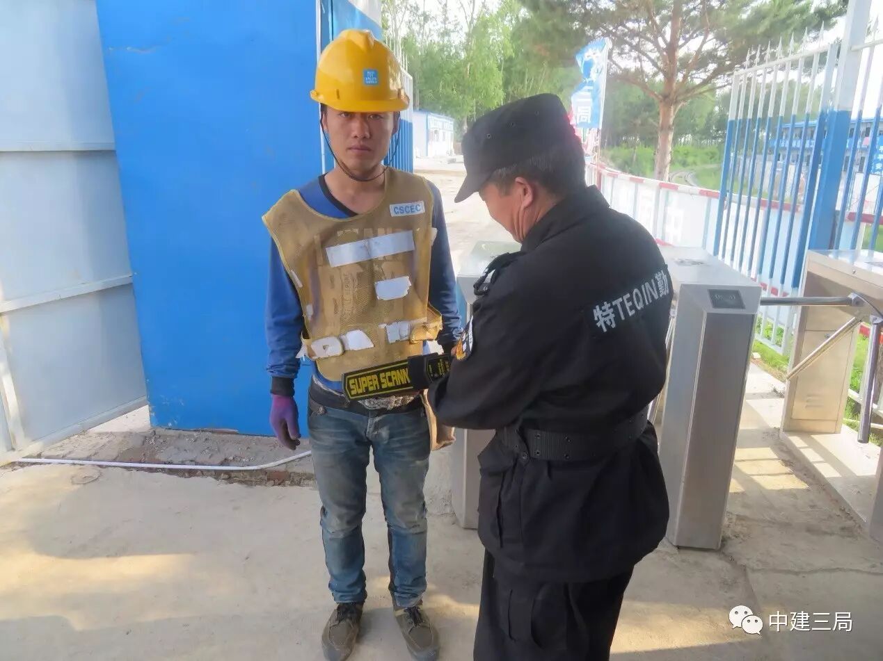 该项目的19名管理人员和280 名工人进出工地上下班都必须刷卡和进行安检。项目经理张文宇说:“项目两名保安每天在入口对进出人员进行安检,进场人员必须交出手机、火机和香烟,没带卡的民工不允许进入工地,工人们出场时也必须刷卡,电子屏上会显示工人的照片、工种、进出场时间、受安全教育时间。”