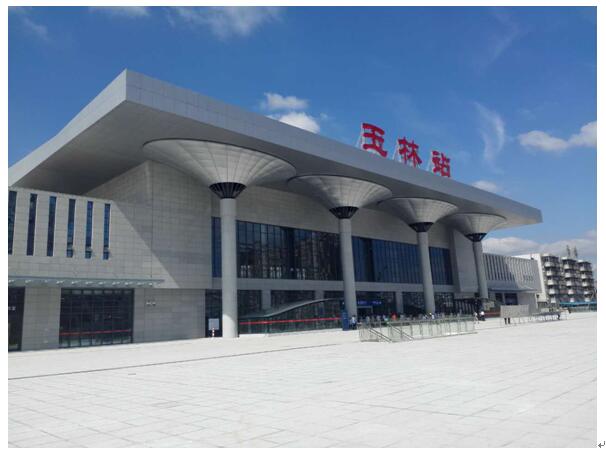 本工程约位于玉林市玉州区,是黎湛线区段站和南宁铁路局管内玉(林)湛(江)茂(名)区域内的主要技术作业站,为既有车站扩能改造工程,施工过程中,车站照常运营。玉林站站房建筑面积17754m2,建筑高度21m,候车大厅屋面为钢结构网架金属屋面。站房外立面设计造型柱取材于“玉树成林”的城市理念,站房前造型为四个独立钢柱结构,柱顶为椭圆形三维渐变曲面造型,呈独特的“柱托树冠状”造型。站内设跨线天桥一座,天桥建筑面积1286.93 m2,其中:天桥主体面积为729.54 m2,天桥钢结构雨棚面积为1847.1 m2;桥柱为钢结构圆管柱,桥体为型钢桁架结构,天桥雨棚为门式钢结构屋架,总体屋面与钢楼梯平行,呈45°仰角。有1100吨的型钢结构跨线天桥,280吨钢结构网架,120吨伞状钢管造型。
