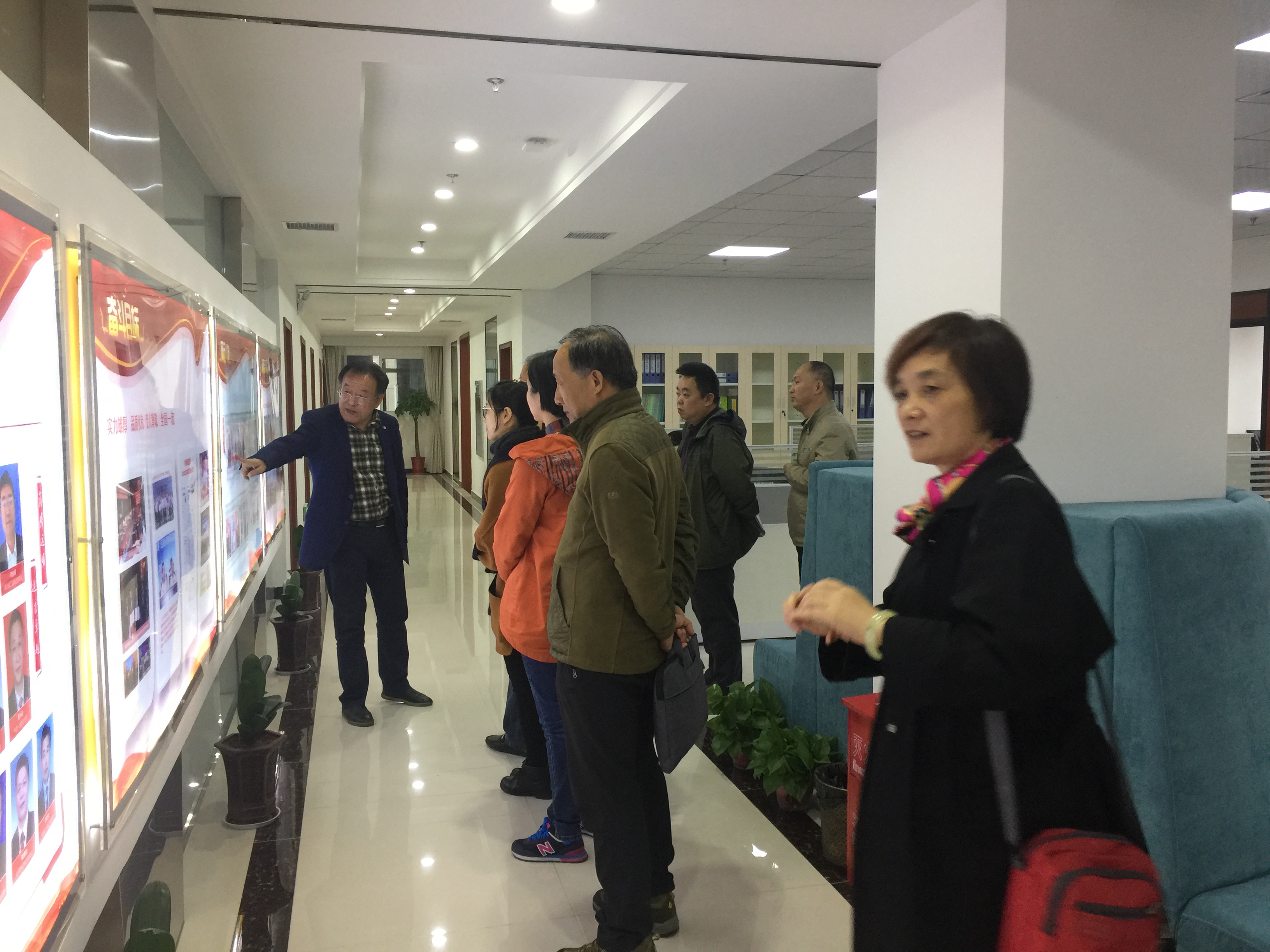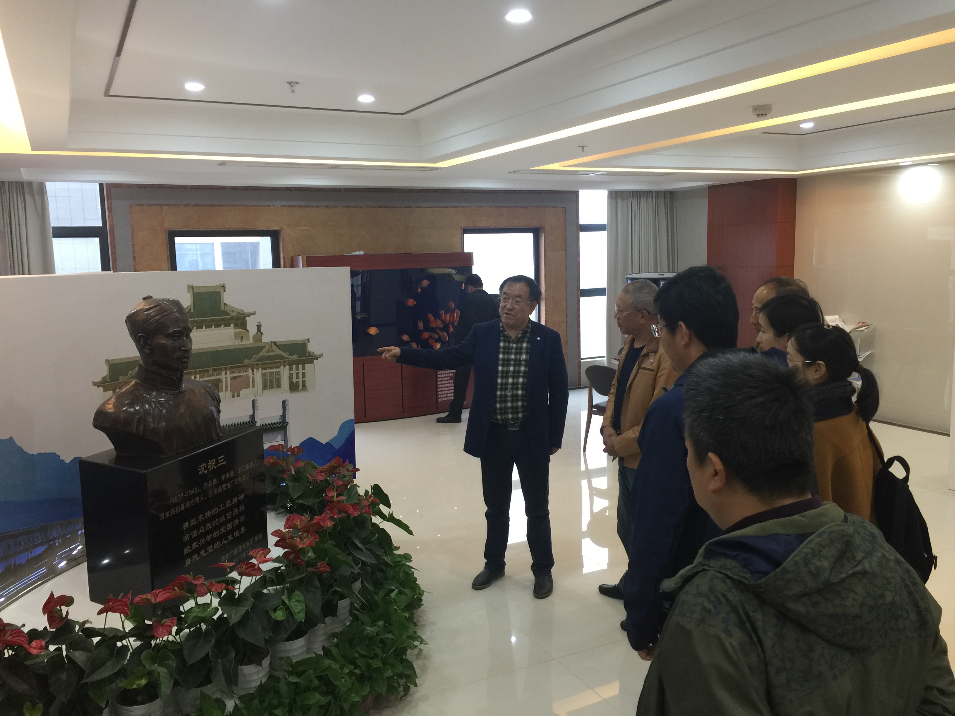 陈会长一行到协会后,在协会副会长兼秘书长李淼磊的引导下参观了协会五大文化产品,并逐一介绍了文荟苑、沈祝三雕像、文化墙的创建情况,对协会的协会职能、发展历史、协会文化进行了讲解。