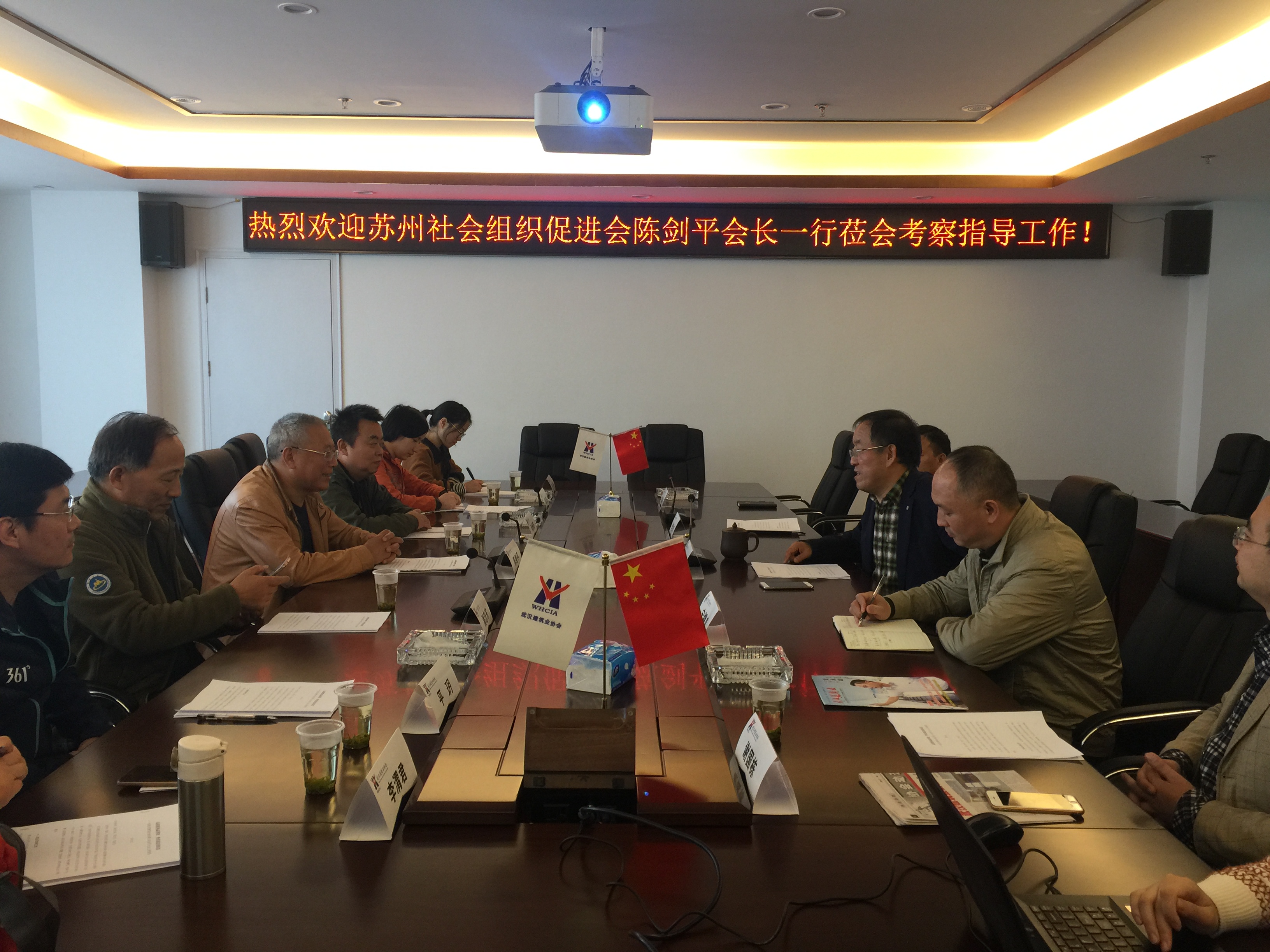 2017年11月13日上午,苏州市社会组织促进会一行7人在会长陈剑平的带领导下来我协会考察交流。协会副会长兼秘书长李淼磊、副秘书长李红青等参加了接待。