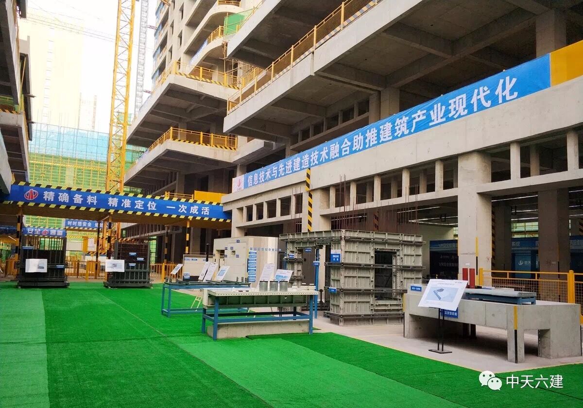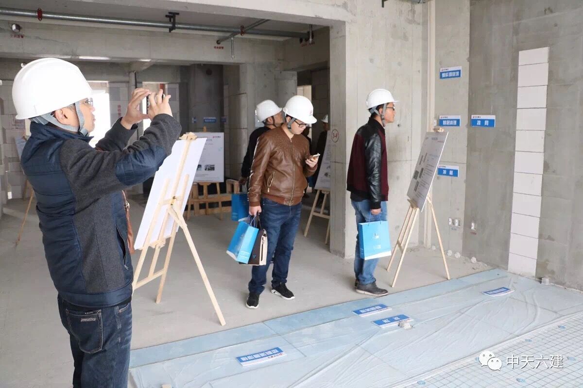 随后,观摩人员分组在现场多个展示区内进行了观摩。VR模拟施工现场,进行安全教育;BIM设计排版,砌墙分毫不差;装配式爬架配合铝模,现浇外墙让“家”的品质更上一层楼……观摩会现场亮出的“绝活”不少。施工现场的智慧建造、快建造体系、标准化管理等多项先进技术和管理模式,赢得了前来观摩人员的称赞和肯定。观摩期间,吴海涛总经理和行业主管部门领导就中天项目管理的部分特色做法进行了深入探讨交流,特别是凭借企业OA平台、BIM管理平台、劳务实名制管理平台、安全VR体验平台、二维码平台等一系列“互联网+”手段打造的智慧工地系统,通过BIM技术进行施工方案优化、安全管理、成本管控,利用标准化管理,提高效率,严把生产质量安全关等一系列先进建造模式和思路,得到与会领导的广泛关注和肯定。