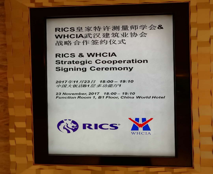 11月23日下午,皇家特许测量师学会与武汉建筑业协会在中国大饭店举行战略合作签约仪式。