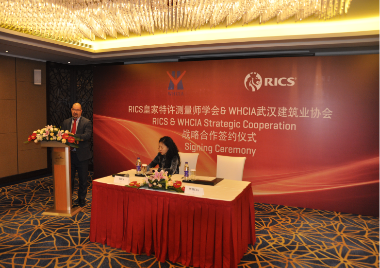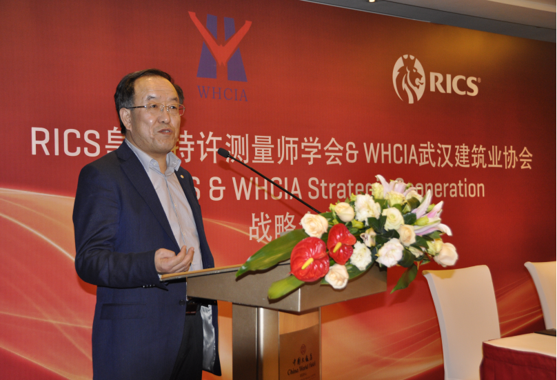 “武汉建筑业协会(WHCIA)和皇家特许测量师学会(RICS)正式成为战略合作伙伴,这次合作意义重大。协会希望与(RICS)增进沟通与了解,按照双方签订的战略合作协议加强交流与合作,加深友好往来,扩大相互合作的深度和广度,促进共同发展。