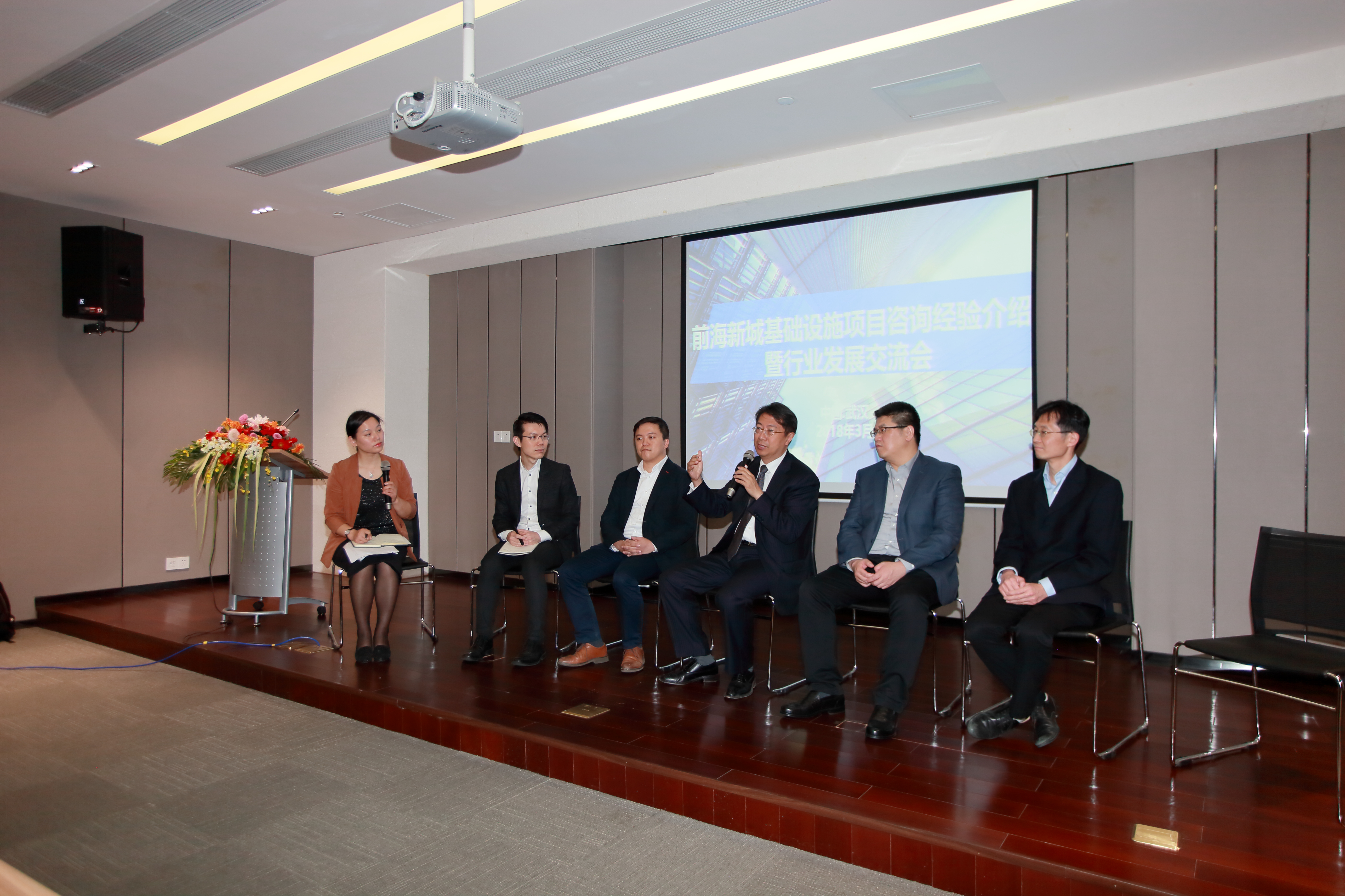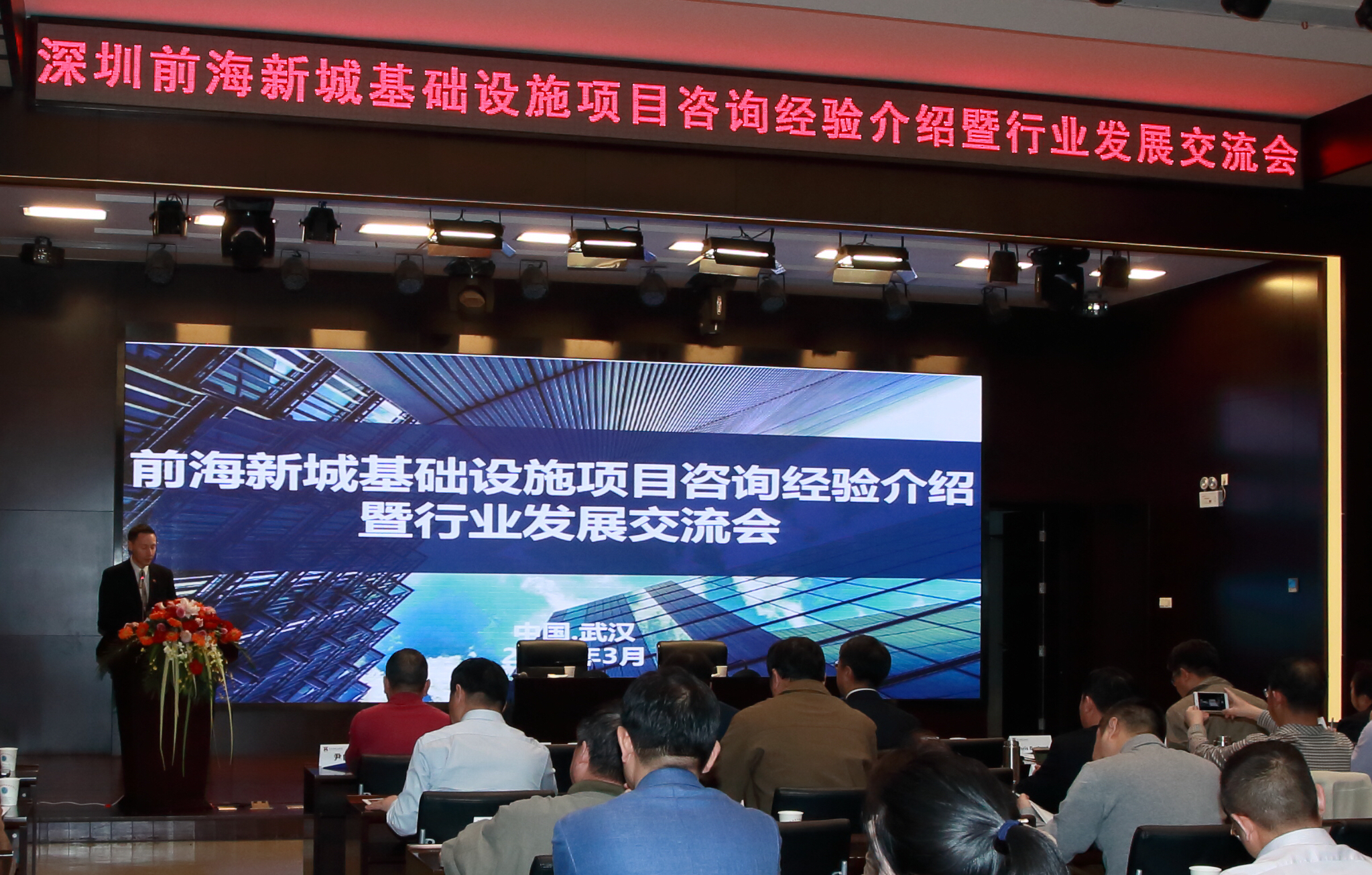 3月30日下午,前海新城基础设施项目咨询经验介绍暨行业发展交流会在武汉市市政建设集团有限公司举行.本次活动由武汉建筑业协会和奥雅纳工程咨询有限公司联合举办.以“深圳前海新城项目”为例,主要分享“促进新经济技术发展的产业及空间策划”、“超高层项目创新设计及新理念”、“全过程设计、管理咨询”三个专题。协会会长副会长、建设工程咨询分会副会长、建筑企转型升级总裁研修班成员共计70余人参加,武汉市市政工程质量监督站副站长唐传政受市城建委指派莅会指导。