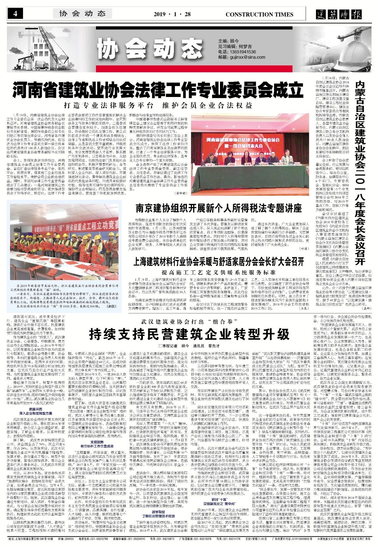 自2017年元月起,武汉建筑业协会会刊先后以“变局•发展”、“聚焦民企转型推动行业升级”、“深化建筑业改革方方面面”、“武汉新民营经济战略和建筑业转型升级”、“从杜绝挂靠做起——民营建筑企业转型升级大家谈”和“武汉市最具成长性民营企业巡礼”为题,组织了6期以民营建筑企业转型升级为内容的专题策划,邀请协会特邀专家、协会领导和本地民营建筑企业负责人和总裁班学员,总共发表了70余篇实践分析总结性的文章。