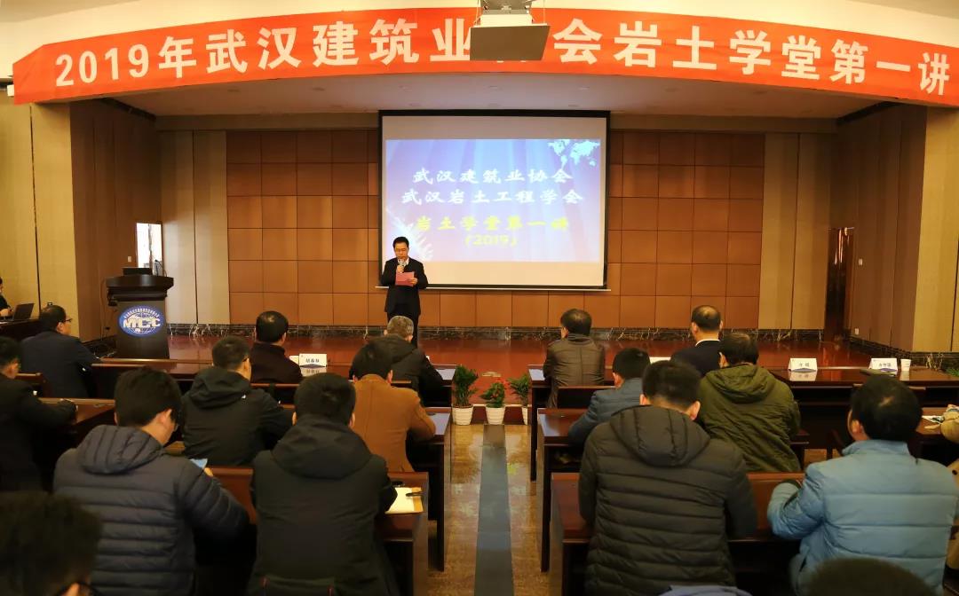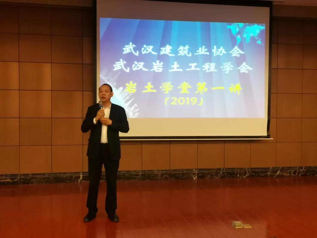 3月7日,协会岩土工程分会2019年岩土学堂第一讲在中冶武勘多功能会议室开讲。副会长兼秘书长李淼磊,岩土工程分会会长郭克诚,副会长占仲国、操经纬、冷钢等领导及会员单位代表百余人现场听讲,座无虚席。 开讲前,李淼磊代表协会为岩土工程分会副会长单位中冶集团武汉勘察研究院颁授“武汉建筑业协会岩土学堂”牌匾并表示,“武汉建筑业协会岩土学堂”在中冶武勘挂牌,是荣耀,更是一种责任和奉献,感谢中冶集团武汉勘察研究院有限公司对岩土学堂的大力支持。 占仲国对大家的到来表示热烈的欢迎,并对胡教授亲自来到学堂为大家传道、授业、解惑表示诚挚谢意。感恩李会长对岩土分会、岩土学堂的大力支持和高度重视。 本次学堂邀请武汉岩土工程学会副理事长兼秘书长、武汉理工大学土建学院教授胡春林博士主讲。他从工程实例出发,结合不同地质地貌情况下不同桩型的适用性,围绕桩基设计与施工中几大难点问题,理论与实践相结合,重点与难点并重,带来了一场干货满满的精彩分享。 郭克诚会长总结发言表示,感谢胡春林教授的精彩分享,感谢中冶武勘对岩土学堂的大力支持。还向大家介绍了复合桩和加芯桩的优点。岩土工程分会将在协会的指导下,本着全心全意为会员单位服务,为会员搭建沟通交流的桥梁和平台。希望大家在这里相互交流学习,增进友谊,让合作变得更加紧密。