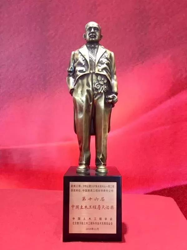 ▲ 颁奖现场 千厮门嘉陵江大桥 千厮门嘉陵江大桥是连接重庆市渝中区和江北区的重要过江通道,始建于2009年12月29日,2015年4月29日正式通车运营。 大桥上层为双向4车道,下层为轨道6号线,主桥采用四跨连续单塔单索面部分斜拉钢桁梁桥结构,在同类桥型中跨径居世界第一,索梁的锚固形式为世界首创,索塔锚吨位世界第一。其主塔采用空间曲面构造形式,外轮廓为天梭造型,具有独特的景观效果。 大桥开通后,重庆市民驾车从朝天门前往江北嘴无需再绕道黄花园大桥,渝中区与江北区互通时间由原来的30分钟缩短至5分钟,同时也串联起解放碑、江北嘴和弹子石三大CBD,有力助推了区域经济发展。 沙特达曼SGP集装箱码头 一期工程 沙特达曼港项目是二航局在中东地区第一个设计及施工总承包(EPC)项目。 该项目码头为方块重力式结构,包含750米泊位、约45万平方米后方场地吹填、集装箱堆场、集装箱联运铁路及码头管理、海关建筑等,总工期800天,2012年7月开工,2015年4月竣工。 达曼港是沙特第二大港,该项目的建设运营,更好地满足了港口快速发展需求,对沙特及周边地区经济发展具有重要推动作用,也进一步推动了中国与沙特在交通基础设施领域的互信合作和“一带一路”倡议在沙特落地。 据悉,第十六届詹天佑大奖共有30项工程获奖。该奖项设立于1999年,主要授予在科技创新(尤其是自主创新)和科技应用方面成绩显著的优秀土木工程建设项目,是全国建设系统工程奖励项目之一,也是中国土木工程领域工程建设项目科技创新的最高荣誉奖。