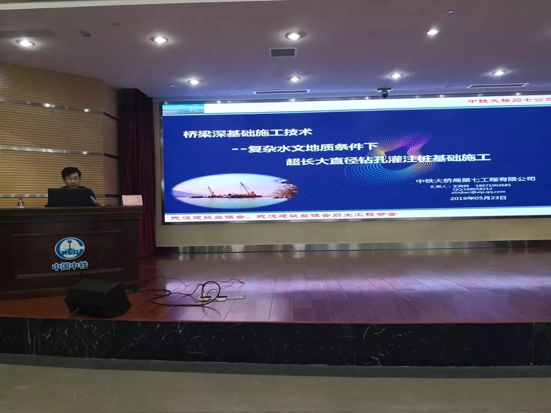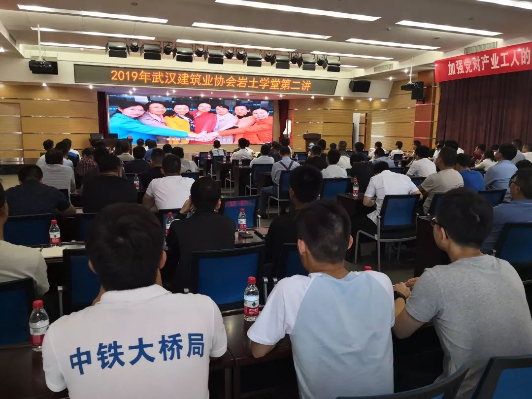 5月23日下午,武汉建筑业协会岩土工程分会岩土学堂第二讲在中铁大桥局七公司七楼会议室开讲。听课人数百余人,学堂由岩土工程分会副秘书长汪惠文主持,协会副秘书长李红青出席。 学堂开始首先观看了中铁大桥局七公司宣传片及安九铁路鳊鱼洲长桥大桥施工动画。通过观看视频,使大家对中铁大桥局七公司的企业文化、施工、管理、科研和服务能力及鳊鱼洲长江大桥的施工难度及技术难度有了一定的了解。