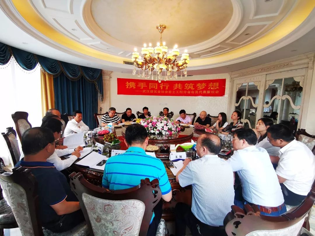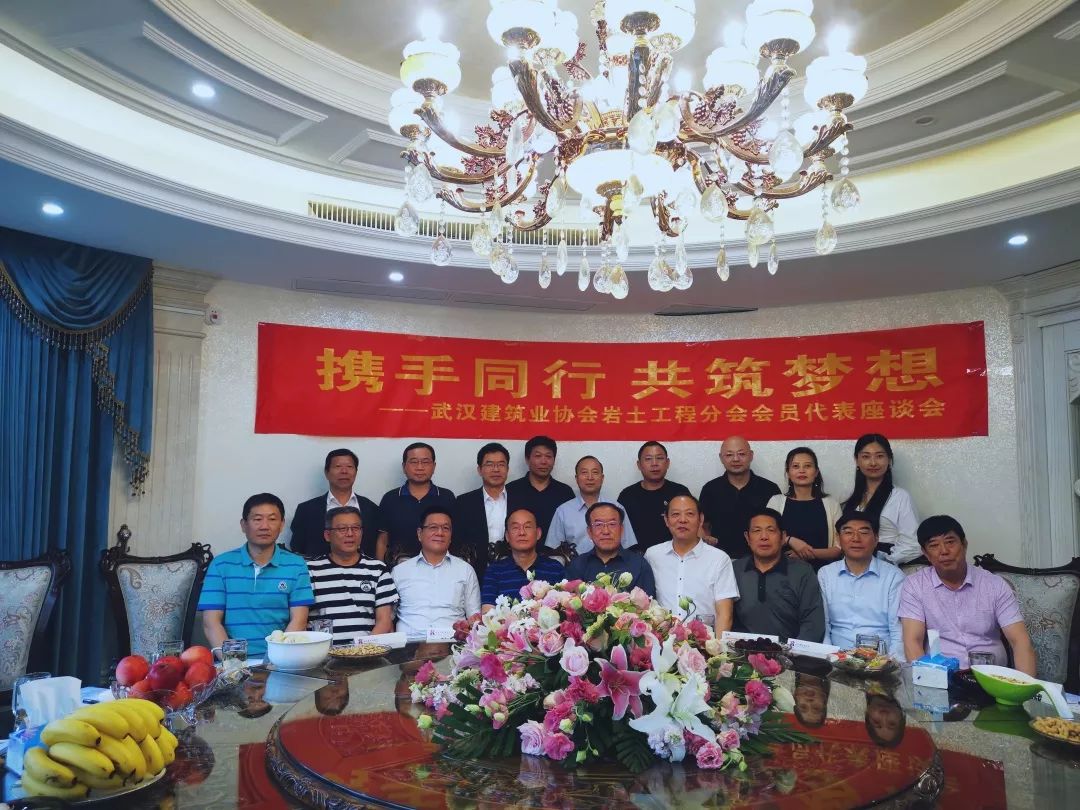 时值孟夏,绿树成荫,燕语蝉鸣。在这个生机盎然的季节里,武汉建筑业协会岩土工程分会会员代表座谈会于5月31日在分会会长、谦诚桩工董事长郭克诚先生府中宴会厅圆满举行,会议由岩土工程分会秘书长刘新梅主持,建协副会长兼秘书长李淼磊、副秘书长李红青等协会领导及来自中冶武勘、武建机施、华中岩土、中南勘察、大成科创等15家岩土分会会员企业负责人共聚一堂,共话行业现状,共谋行业长远发展。