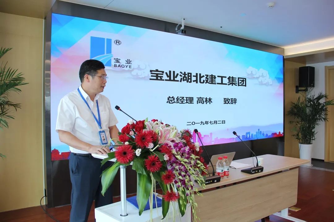 7月2日下午,《智能建造与建筑产业变革》主题报告会暨协会2019年二季度会长办公会在宝业湖北建工集团有限公司召开。协会会长、中建三局党委书记、董事长陈华元主持会议,宝业湖北建工集团总经理高林代表会议承办方致词。与会人员集体参观了宝业集团展厅和文化长廊并观看了《让建筑深呼吸》宣传片。