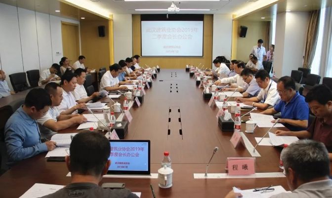 随后在宝业湖北建工集团第5会议室召开了协会2019年二季度会长办公会,会长、副会长、监事会主席等共22人参会。丁烈云院士受邀列席会议。