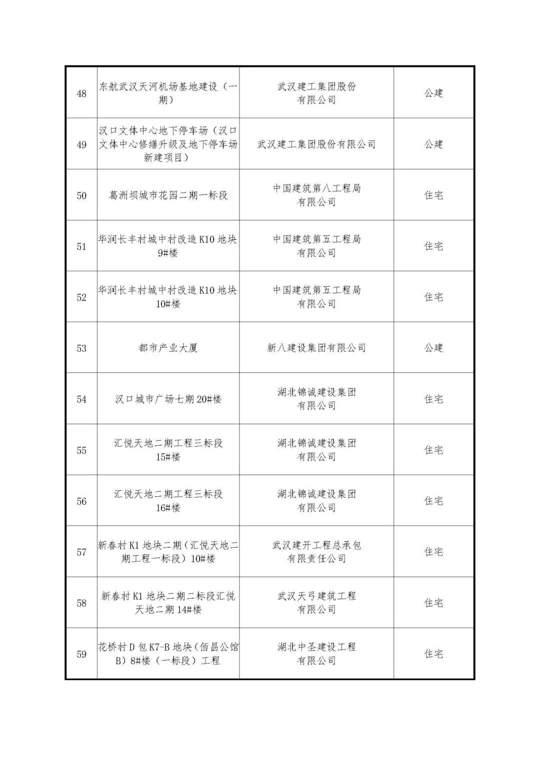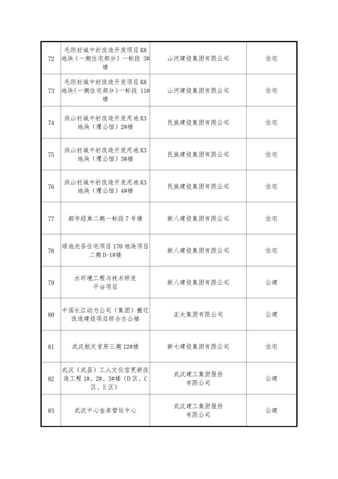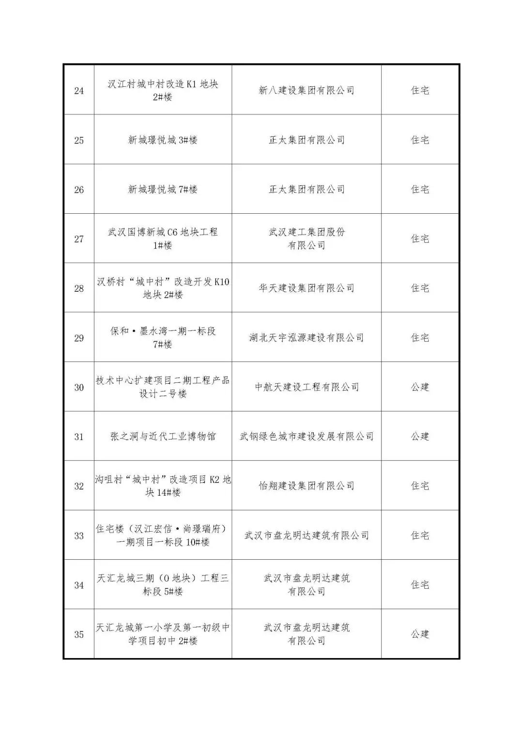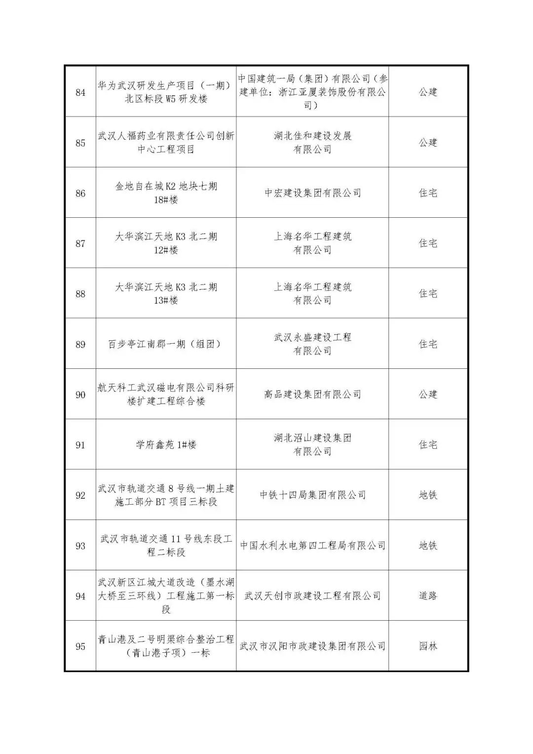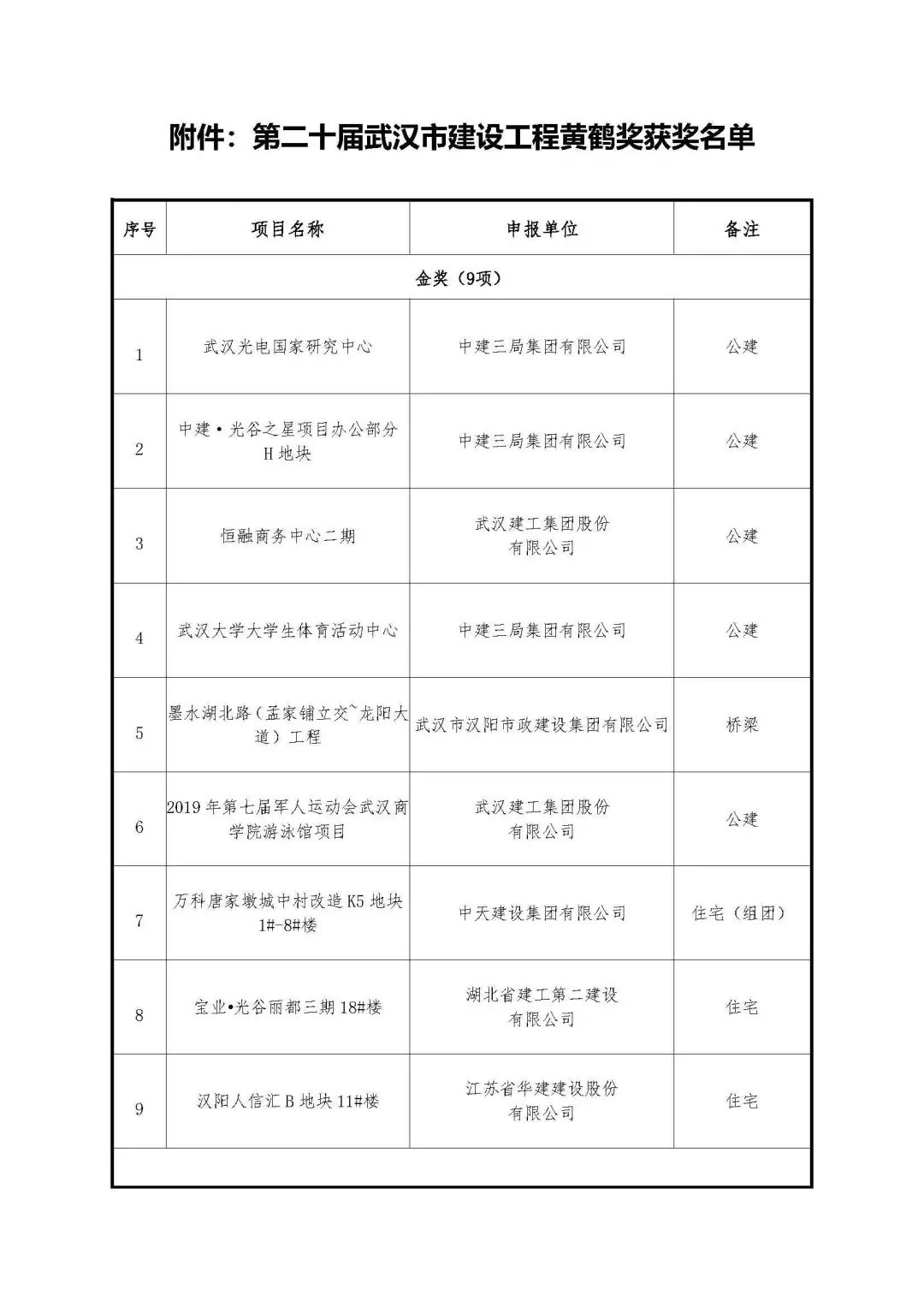 第二十届武汉市建设工程黄鹤奖获奖名单