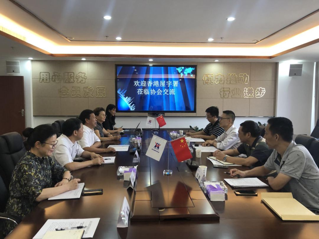 9月3日,香港屋宇署高级测量师王建业先生在武汉市建筑工程质量监督站总工高承等陪同下赴协会交流工作,协会秘书长李红青带领相关分支机构负责人参与交流。