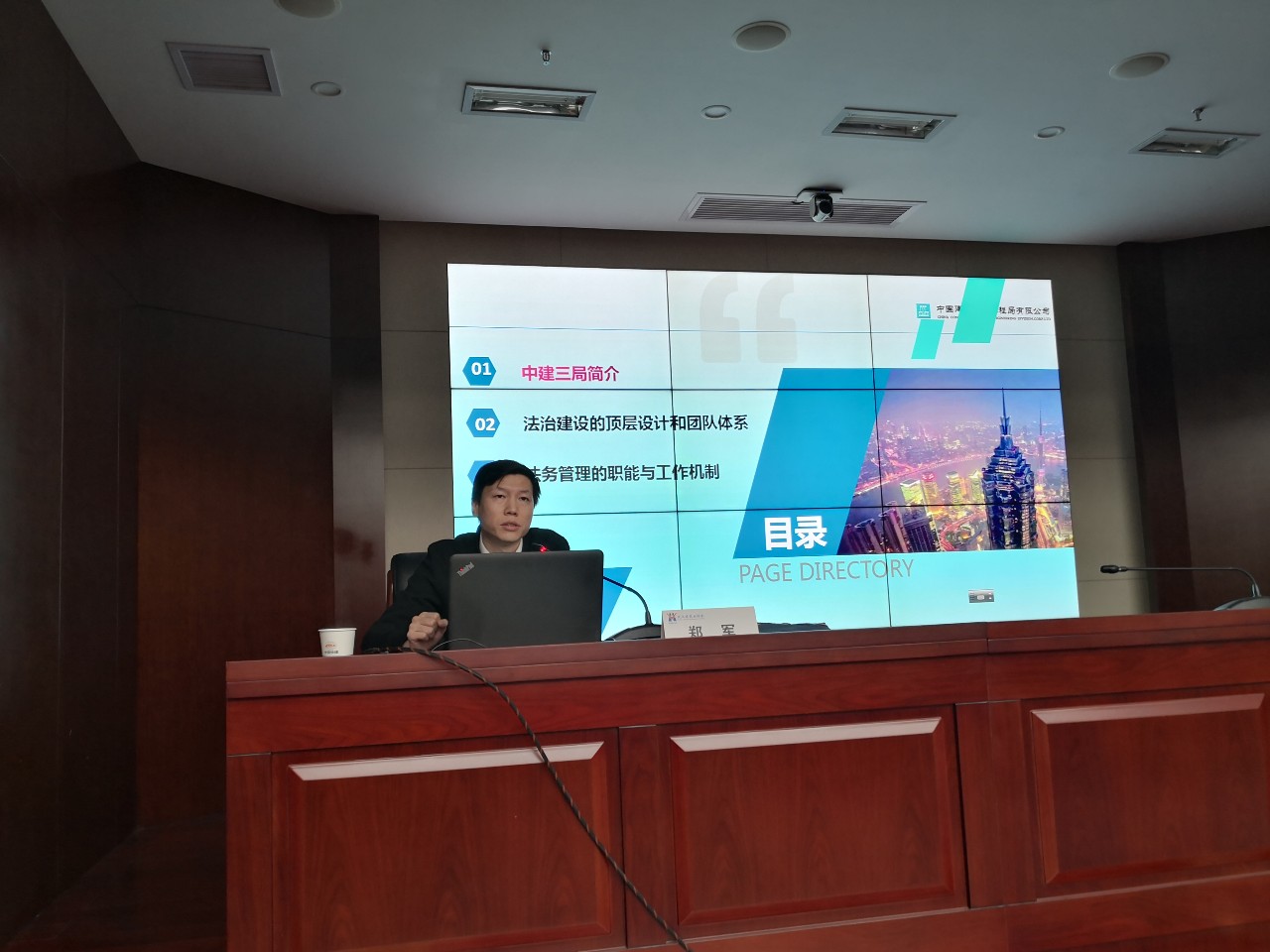 郑军先生作了题为《全面推进法治央企建设 纵深服务企业改革发展——中建三局法治建设的实践与探索》讲座,从两个层面分享企业如何进行法治建设的顶层设计和专业团队建设、如何明确法务管理职能与工作机制体系建设等内容,具体讲述“发挥‘关键少数'作用,促进决策主体依法履职;