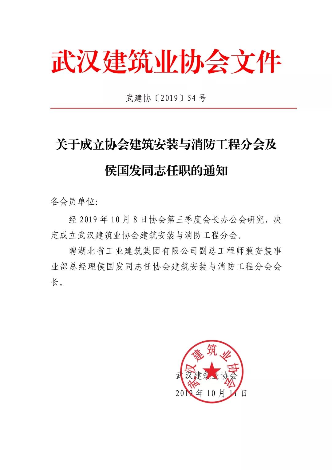 侯国发同志代表湖北工建集团致欢迎词,王全华宣读了协会相关人事任职文件,按照文件,侯国发同志任分会会长,张杰等五位同志任副会长,周攀同志任分会秘书长。