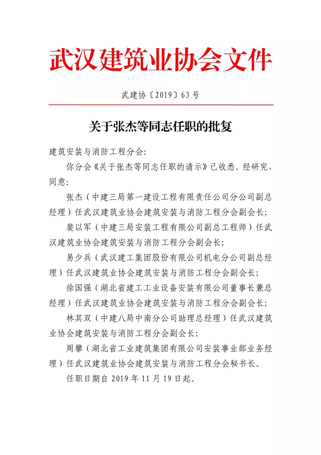 11月27日下午,协会建筑安装与消防工程分会首次会长办公会在湖北省工业建筑集团有限公司召开。协会副会长李淼磊,党支部副书记王全华,分会会长侯国发(湖北省工业建筑集团有限公司副总工程师兼安装事业部总经理),副会长张杰(中建三局第一建设工程有限责任公司分公司副总经理)、裴以军(中建三局安装工程有限公司副总工程师)、易少兵(武汉建工集团股份有限公司机电分公司副总经理)、徐国强(湖北省建工工业设备安装有限公司董事长兼总经理)、林其双(中建八局中南分公司助理总经理)等出席会议,向延昆、严阳、吕仕才等列席会议。