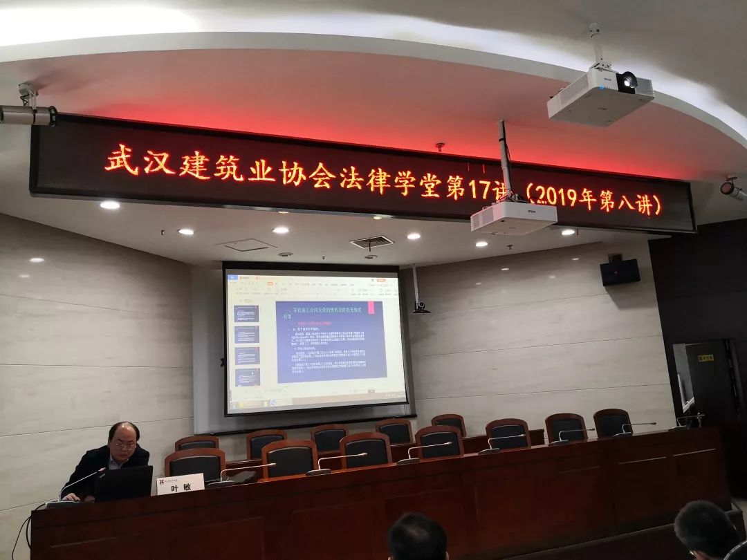 12月26日下午,协会法律学堂第17讲(2019年第八讲)在武昌新时代商务中心开讲。本次讲座邀请湖北百思得律师事务所合伙人叶敏律师主讲,由法工委副主任兼秘书长何啸伟主持。部分会员单位领导以及相关业务部门经理和工作人员,有关法律服务机构律师等90多人参加。 叶敏律师作了题为《建设工程施工合同司法解释中几个热点问题风险防范》讲座,主要讲述施工合同无效的情形及防范对策、化解“黑白合同”问题和实际开工日及顺延工期的实务操作、诉前造价结算和争议专业咨询、工程价款优先受偿权和实际施工人权利保护等方面内容。 本期讲座,既讲述了最高人民法院关于审理建设工程领域两个司法解释涉及的几个热点问题,还分享相关案例和防范经验。课时当场讨要课件,课后纷纷建群分享。2019年,协会法律学堂按照计划,实现圆满收官。