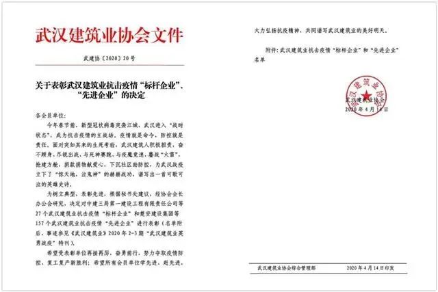 中华建设网讯(记者 魏莱)4月29日,继获得2019年武汉市五一劳动奖状之后,武汉建筑业协会再获殊荣——喜获2020年湖北省五一劳动奖状。据悉,这是省内行业协会首次获得如此高等级荣誉。