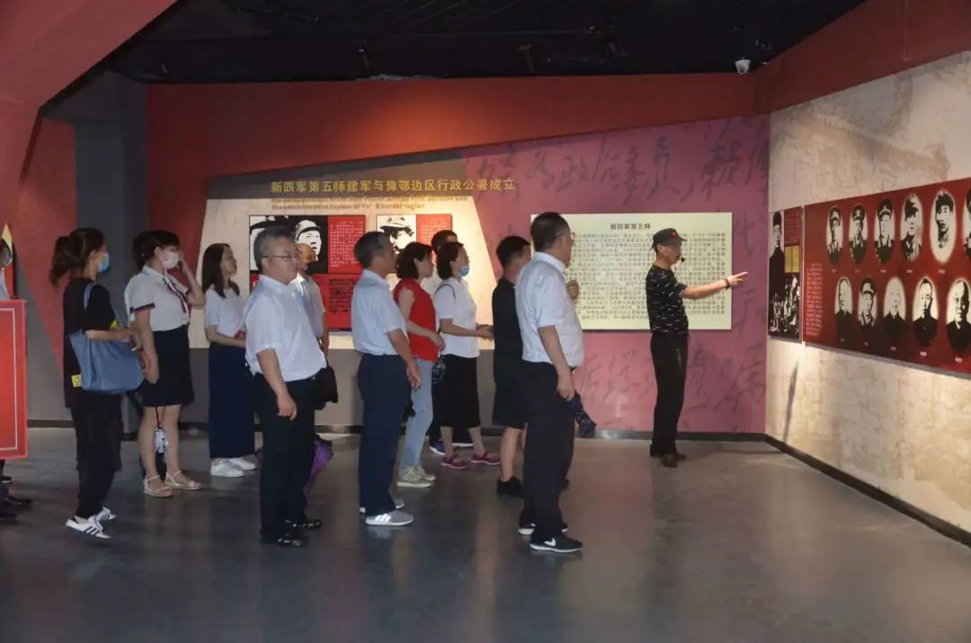 联建支部党员们参观了陈列馆,瞻仰了李先念、郑位三、陈少敏等鄂豫边区重要领导人群雕,还通过听讲解员从木兰烽火、怒潮喷涌、挺进鄂豫、中原抗战、战略包围、抗战胜利等六个部分,了解了当年新四军第五师抗击日本侵略者的峥嵘岁月。