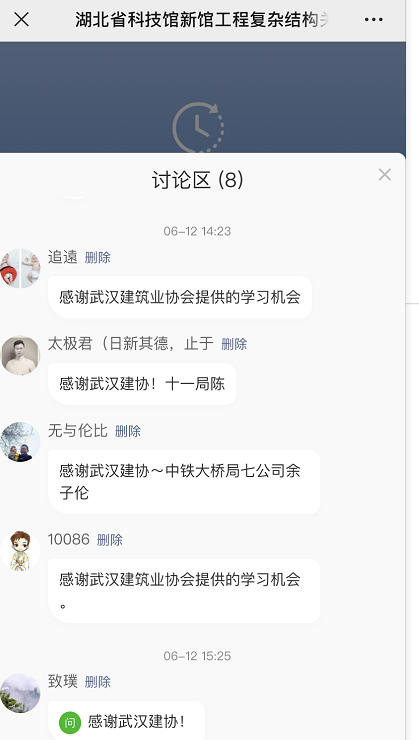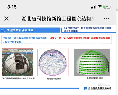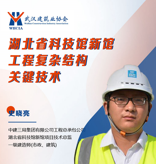 为了进一步提高企业技术创新实力,提高企业技术水平,2020年武汉建筑业技术学堂第三讲于6月12日下午在线上成功举行。参加培训在线人数近500人。 本次技术学堂由2020年“三品杯”BIM技术应用大赛冠名单位——中建三局集团有限公司工程总承包公司承办,项目技术总监--史晓亮作《湖北省科技馆新馆工程复杂结构关键技术》讲座。中建三局承建的湖北省科技馆新馆工程是中部地区最大、最先进的科技展馆及科教重地,是武汉未来科技城的新地标,也是展示我国科学技术水平及湖北文化之窗。他主要从四个方面对项目施工重难点分析、长悬臂类斜拉结构施工技术、漏斗型双曲网壳结构施工技术、超大直径球形薄壳混凝土结构施工技术进行详细授课。 讲授内容得到众多企业欢迎,相关企业积极组织技术部人员及项目部相关人员集体学习,并与协会沟通要求将课件对会员进行分享。 通过协会BIM技术学堂的开展,我们更加希望更多企业技术专家参与,为会员单位提供更多技术知识共享平台,共同促进科技创新水平,提高企业内动力! 史晓亮:中建三局集团有限公司工程总承包公司项目技术总监,先后参加和主持了武商仙桃购物中心、中国银行新建办公楼、华科光电信息大楼、湖北省科技馆新馆等多个大型项目的科技攻关工作,先后发表科技论文10余篇,获各级科技进步奖1项,专利、工法成果10余项,国家一级注册建造师(市政、建筑、)。 项目施工重难点 (1)球幕影院施工 本工程球幕影院中庭为钢筋混凝土半球形穹顶结构,高度较高(最大高度约23m)、造型独特(半球形),支模操作难度大、风险高,混凝土质量不易保证。 (2)45m大悬挑钢结构施工 科技馆主体结构为典型的大悬挑结构,钢结构用量超过30000t,主桁架最大悬挑达45m,悬挑长度仅次于央视大楼,其施工难度堪称湖北省第一。 (3)沉浸影院施工 沉浸影院建筑面积约2000平米,是目前世界先进的全景空中影院,其结构形式为漏斗型双曲网壳结构,整体悬挂于主体钢结构上,结构安装精度要求极高。 (4)斜拉钢丝束施工 本工程跨层主桁架以三、四层楼层主桁架为上下弦,以楼层间跨层杆件为腹杆,并于悬挑端增设平行斜拉钢丝束,与核心筒共同构成一类似斜拉桥的结构体系,平行钢丝束的施工对本工程有着重要影响,其应力水平影响结构的成型与整体安全,其施工质量直接影响整个结构的稳定性及可靠性。 (5)复杂钢结构整体卸载及变形控制难 本工程悬挑桁架及沉浸影院的胎架数量多,工程卸载重量大,卸载工序直接关系到结构的安全与稳定,对卸载过程同步性要求极高。 (6)工期紧、任务重 本工程体量较大,主体钢结构总重约3万吨。施工内容较多,土方、桩基、钢结构、砌体抹灰、幕墙、机电安装、精装修等适时插入施工,且交叉施工内容多,工期紧,任务重。 (7)质量标准高 本工程作为地方标志性建筑,社会影响大,业主对工程质量要求高,一次性验收合格,争创鲁班奖,各专业工序衔接和交叉作业点多,质量控制难度大。同时,招标文件要求配合甲方通过“建筑绿色三星认证”,对工程施工期间绿色施工要求极高。