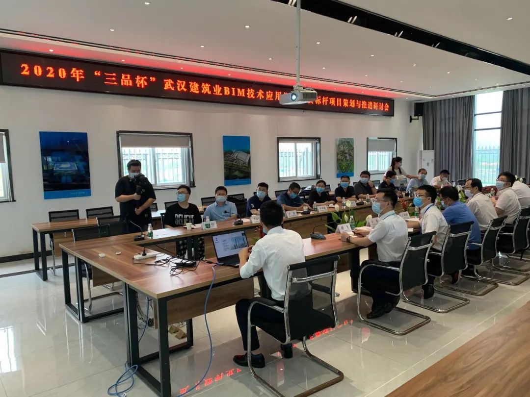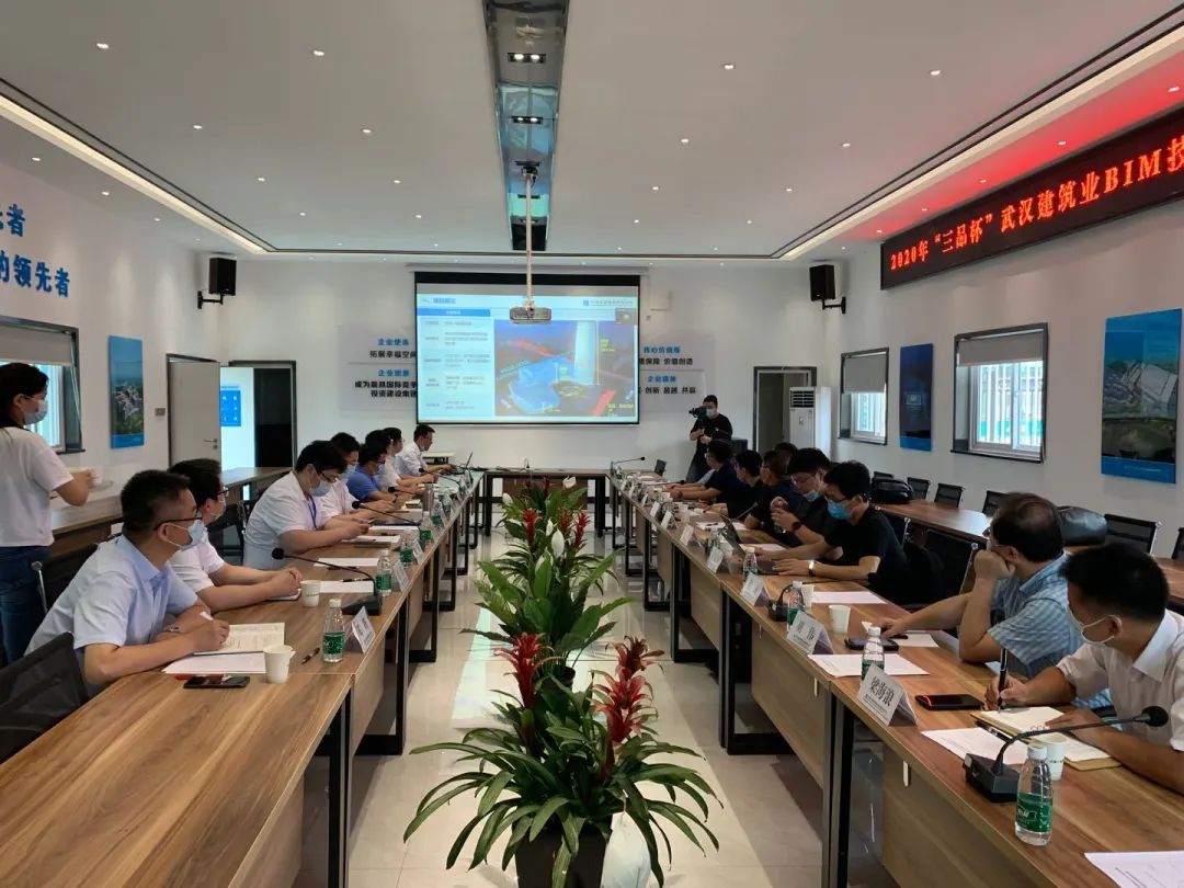 6月23日下午,2020年“三品杯”武汉建筑业BIM技术应用视频大赛标杆项目策划与推进研讨会在中建三局总承包公司湖北省广播电视传媒基地项目召开。协会质量委副主任兼秘书长陈钢、总工委副主任兼秘书长安维红、勘察协会BIM专委会秘书长江明、中建三局总承包公司总工程师余地华、EPC业务中心副总经理胡新余及行业BIM专家共计约30余人参与研讨会。