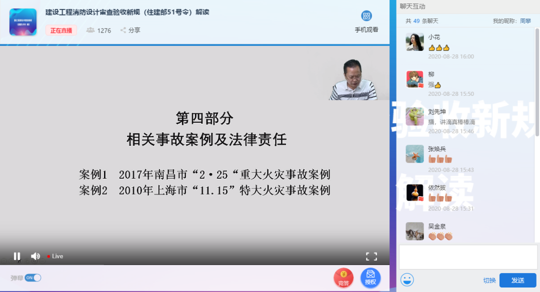 8月28日下午,协会建筑安装与消防工程分会主办的“建设工程消防设计审查验收新规(住建部51号令)解读”线上讲座成功举办。本次讲座受到了协会各单位的热烈欢迎,共有约1500人参与本次线上讲座学习。 本次讲座邀请湖北省消防协会法制建设与火调技术专业委员会委员、北京绿色建筑产业联盟智慧消防专家、中安云(北京)技术有限公司专家组成员王厚军主讲。王总先对住建部颁布的51号令《建设工程消防设计审查验收管理暂行规定》、《建设工程消防设计审查验收工作细则》和《建设工程消防设计审查、消防验收、备案和抽查文书式样》进行详细解读;然后对湖北省关于消防设计施工图设计联合审查、消防设施竣工联合验收具体要求的《关于推进房屋建筑和市政基础设施工程施工图设计文件联合审查的实施意见》和《关于印发湖北省建设工程联合竣工验收暂行办法的通知》两个文件作出了针对性讲解;最后以南昌市“2.25”重大火灾事故和上海市“11.15”特大火灾事故两个案例为载体,结合法规文件对其事故中各方单位法律责任进行了详细分析。 本次讲座帮助学员系统了解了消防工程最新验收规定,更加深刻学习理会最新政策文件内容,受到会员单位充分认可,相关会员单位项目部组织技术人员集中学习。下一步分会将继续致力于加强建设工程消防验收监督管理,提升建设工程消防设计审核与验收水平工作而努力。