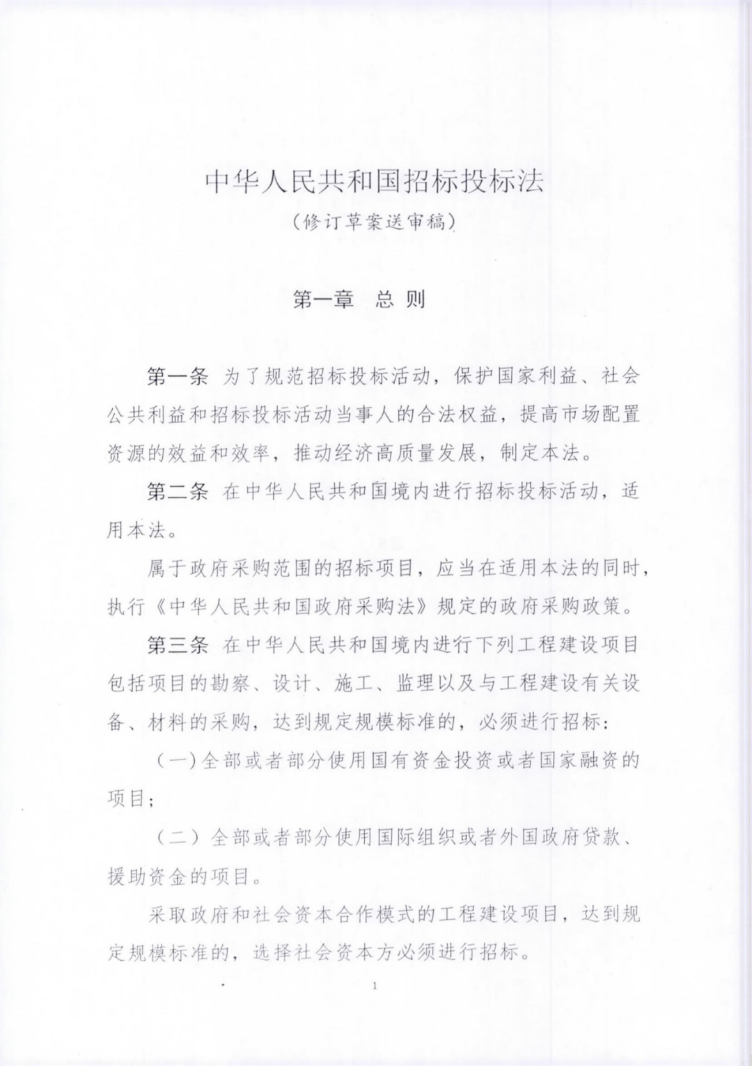 1、中华人民共和国招标投标法(修订草案送审稿)
