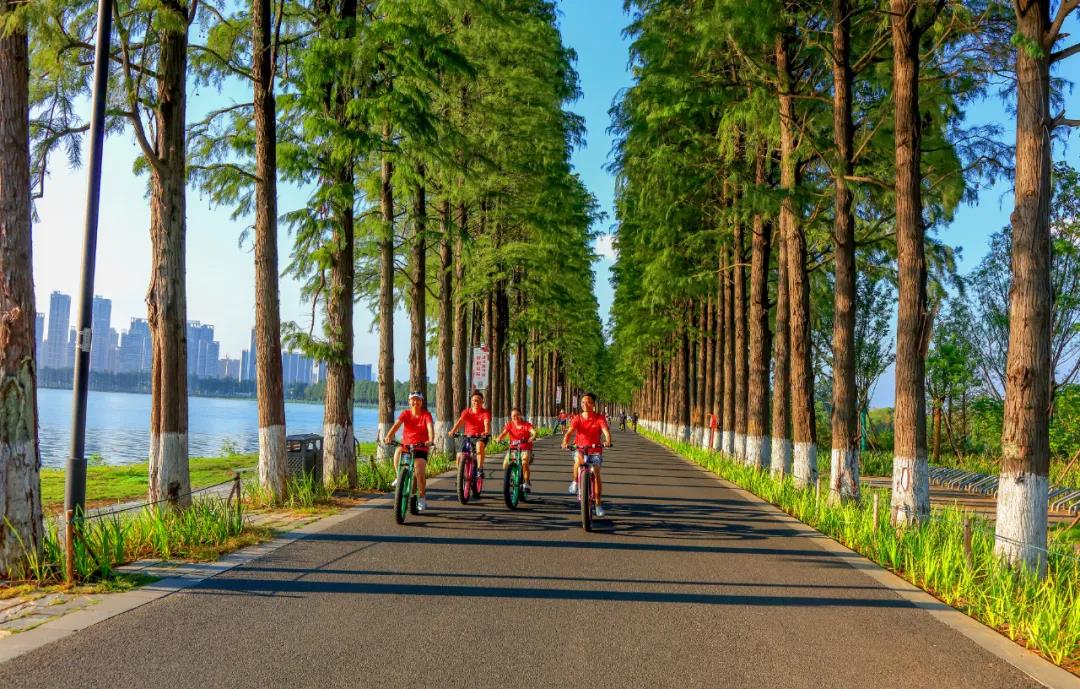 中国一冶东湖绿道项目经理徐钟园介绍,湖中道和郊野道将沿线2个门户景观,8大主题区域,6个服务点连句成章,郊野道自然生态,野趣怡人,感自然之脉搏,享绿色之趣行;湖中道水杉林立,恣意盎然,感内湖之灵气。