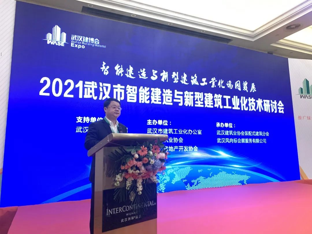荣先国副局长同志致辞并从政策体系、市场规模、实施能力、行业管理等四个方面介绍了我市装配式建筑推进情况。荣先国指出,武汉市作为国家中心城市和建筑业强市,要抢抓机遇,乘势而上,推进智能建造。一是全面贯彻新发展理念,大力推动智能建造和新型建筑工业化,打造智能建造支柱产业。二是坚持创新驱动,培育一批智能建造和新型建筑工业化协同发展的龙头企业、研发基地、创新团队和领军人才。三是坚持问题导向,打通堵点,补齐短板,发挥优势,构建布局科学、供需动态平衡的新型建筑工业化产业链。四是坚持系统理念,形成可推广复制的标准体系、管理体系和实施体系,推动建筑业向高端化、智能化、绿色化全面转型升级。