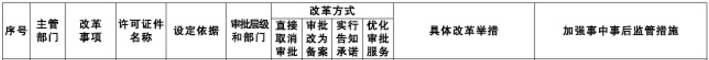 中央层面设定的涉企经营许可事项改革清单