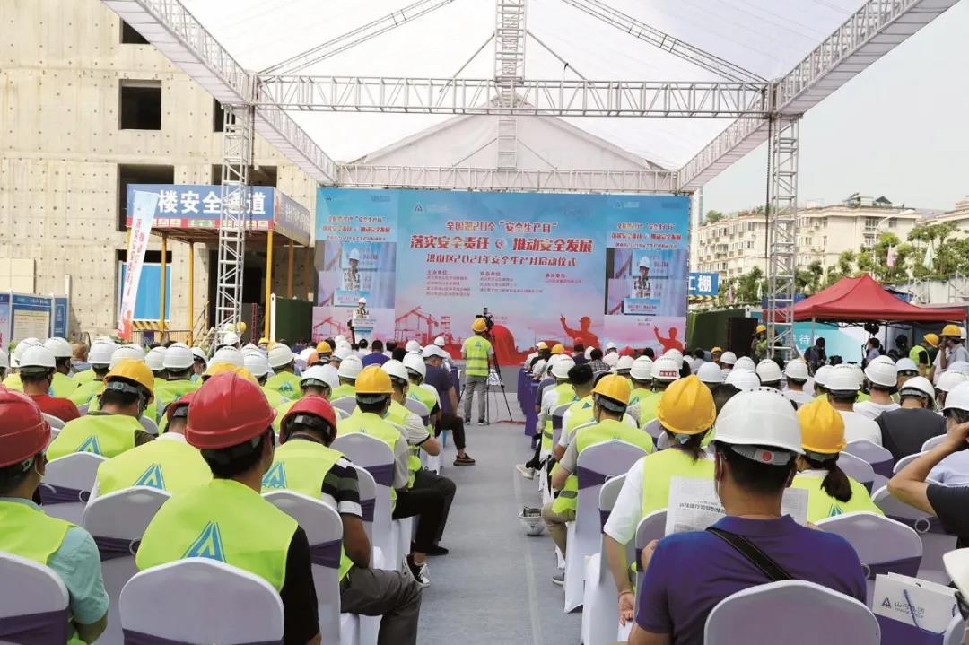 6月2日,洪山区2021年安全生产月启动仪式于该项目召开,现场一并举行脚手架高空坠落及消防事故应急演练。