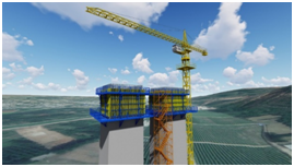 项目青龙涧河特大桥上方存在高压线,对于上构施工会造成阻碍,通过BIM技术对青龙涧10#墩进行模拟,分析高压线对上构施工产生的影响,结合BIM数据及时反馈,协助进度计划编排,帮助项目推进了高压线的征拆工作。