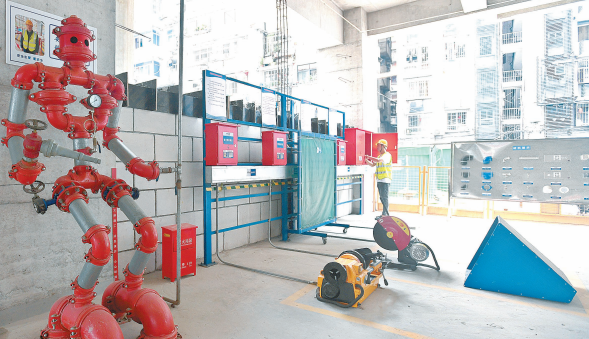 太平洋金融广场项目工地配备了并不多见的微型消防站。