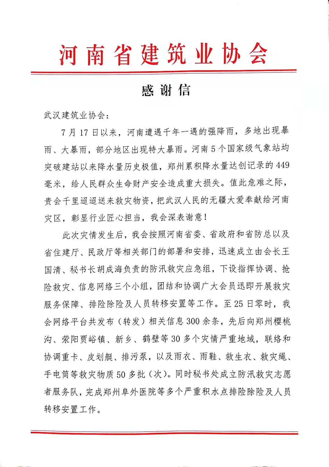 星夜驰援 雪中送炭 ——武汉建筑业协会倾情支援郑州灾区