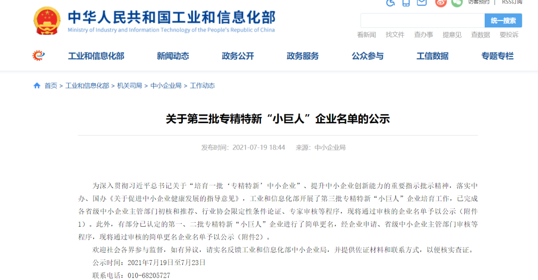 喜报!中岩科技获评国家工信部专精特新“小巨人”企业